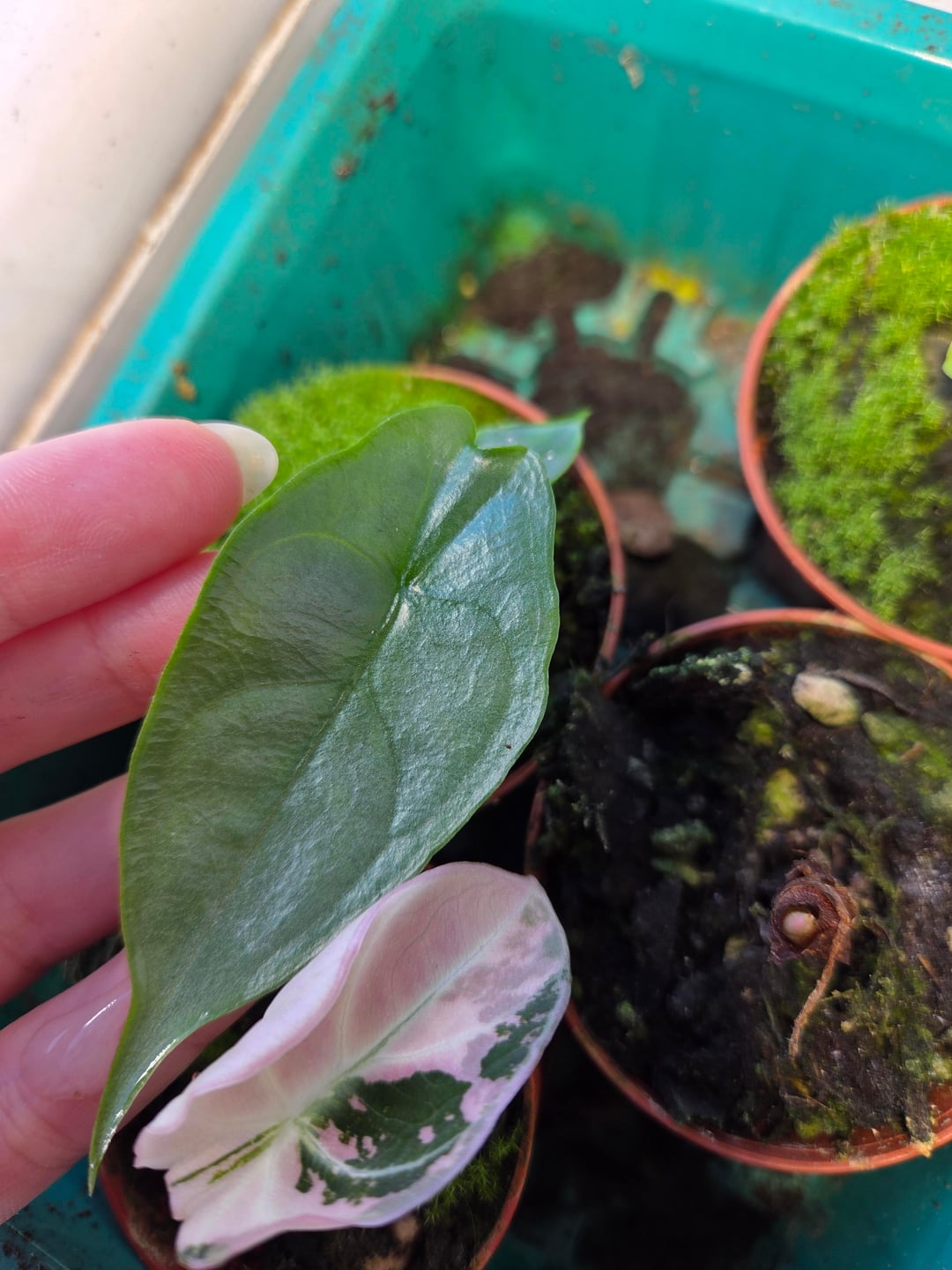 I know that the 1st is extremely soon to tell, BUT I had 2 dragon scale albo corms and I thought that I lost both. It would be amazing that at least one of them survived. It's my favorite plant. 😠Could it be a dragon scale?