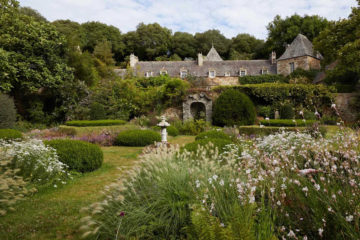 This love led him to purchase Les Jardins de Kerdalo, a historic botanical garden in the Breton commune of Trédarzec. Cultivated by Russian prince and horticulturist Peter Wolkonsky in the second half of the 20th century, it has labyrinthine walkways leading to plant beds with signature Breton flora, like hydrangeas, as well as endangered specimens like the Wollemi pine. Waterfalls, terraces, and an Italian grotto dot the 42-acre estate.