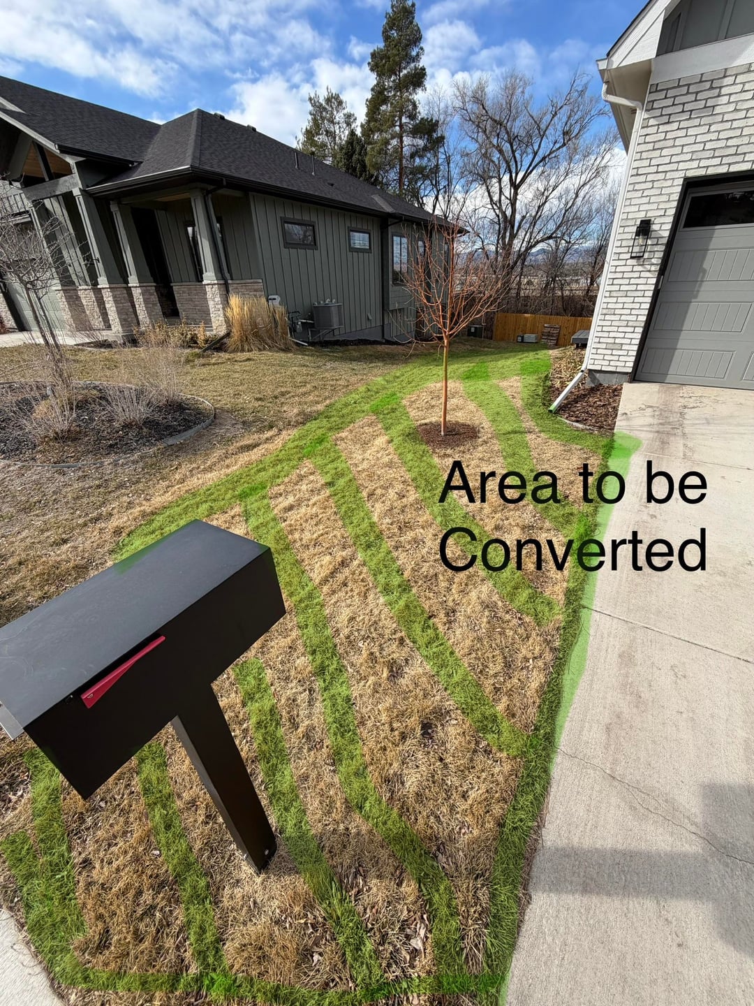 I want to convert a portion of my front lawn to a garden but we need an access point from driveway to the side of the house and all the way back. Where should I put the path?