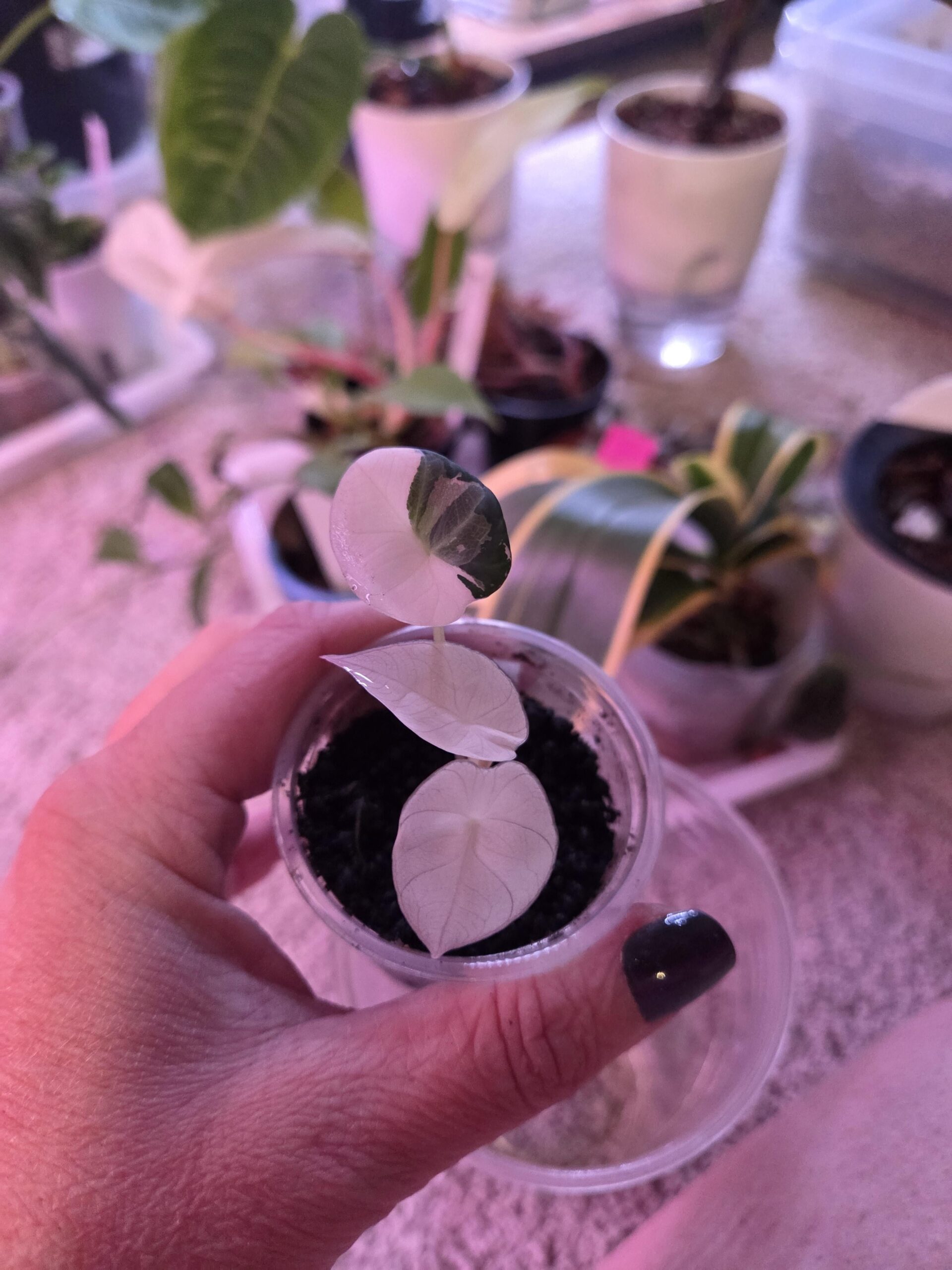 He seems to be getting into a pattern of 2 white leaves, 1 green leaf. I love how the white ones look but I know they will not last. I can enjoy them while they are here 🙂 by Iluvdemkitties alocasia Comments are closed.