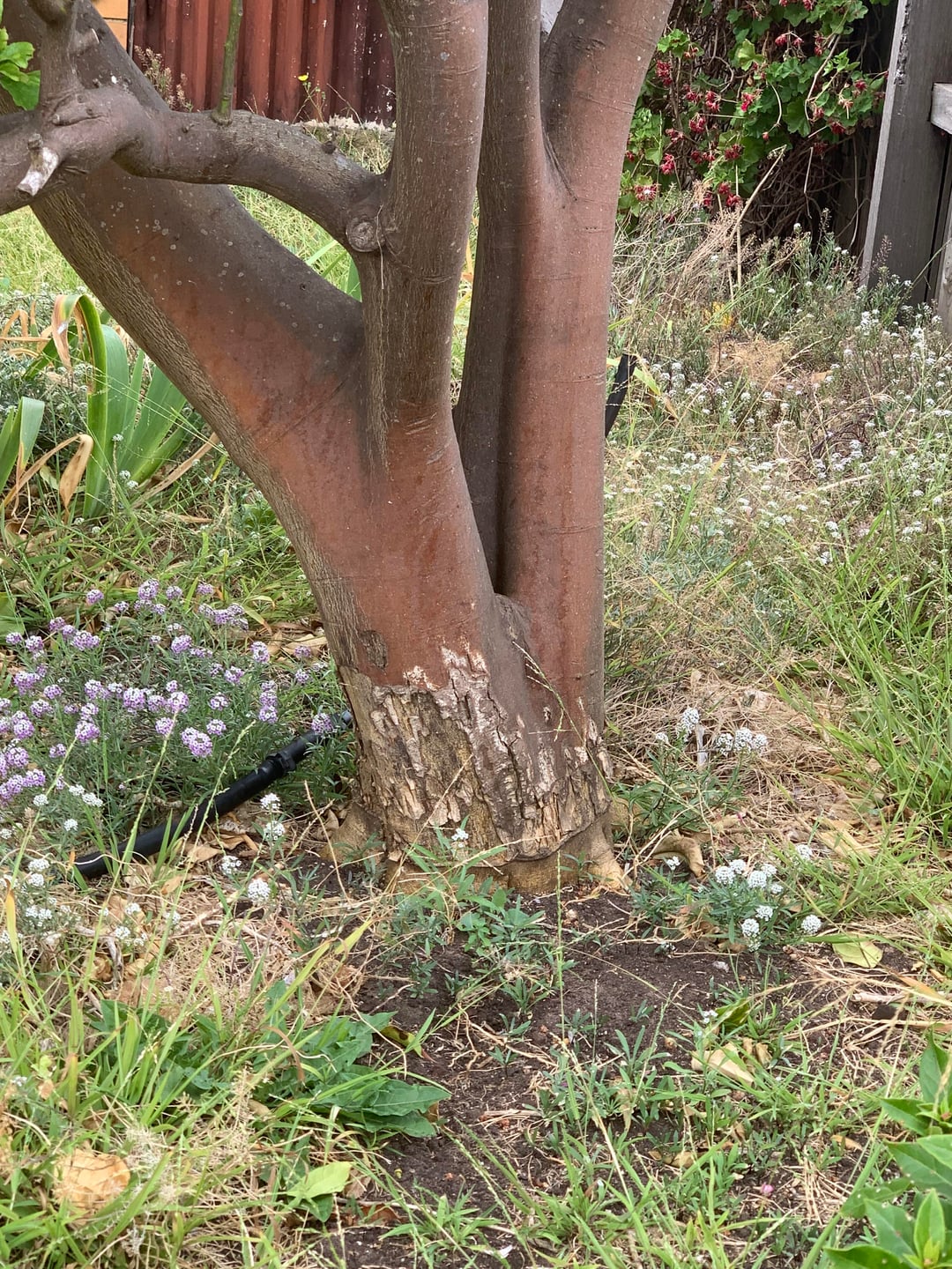 How much of the circumference around the trunk does that cracking region cover? That’s a really bad sign