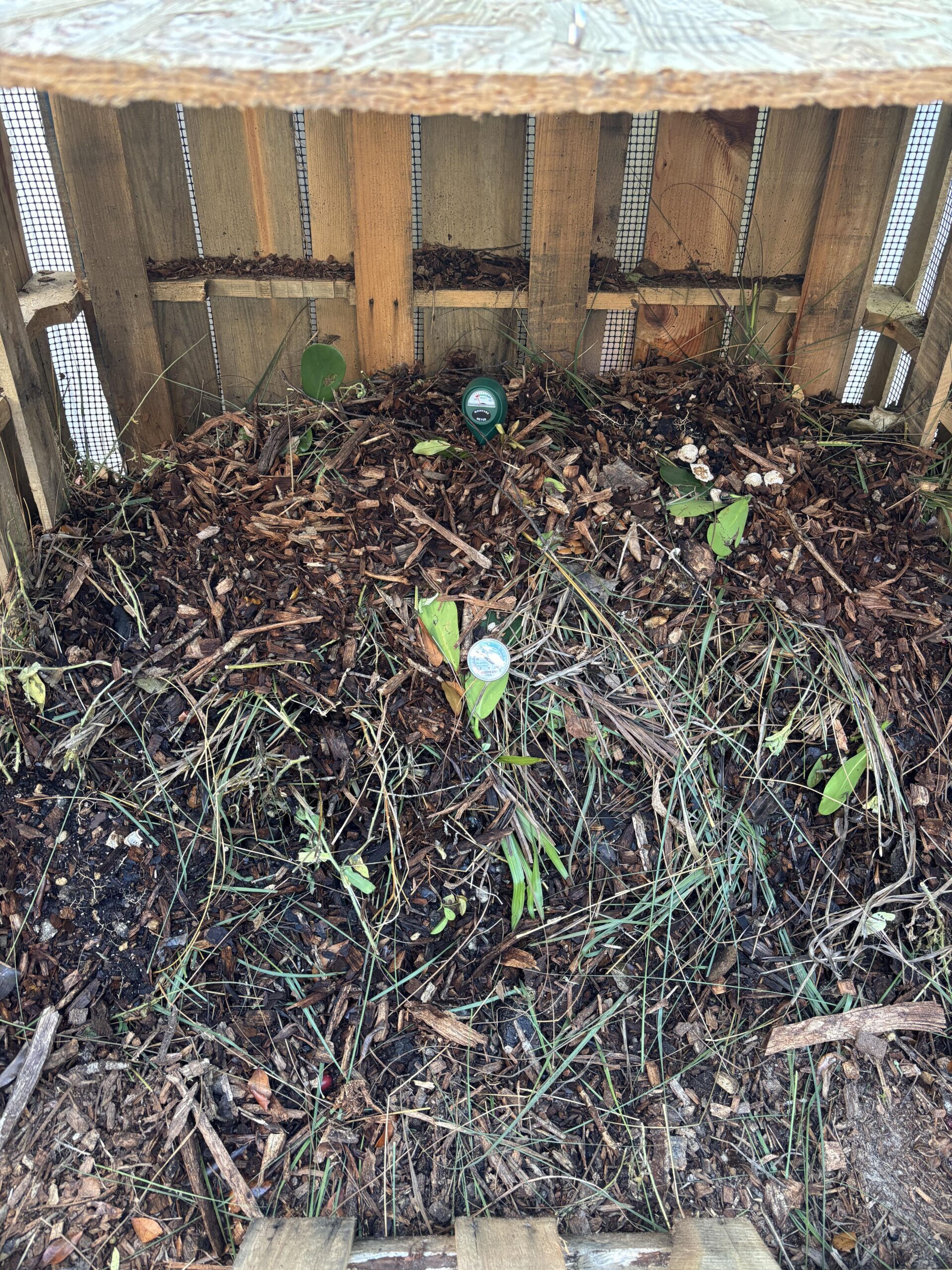 It’s a mix of food scraps, yard waste and mulch. Ratios aren’t exact I kind of eyeball it but for every scoop of nitrogen I add ~2-4 scoops of carbon. I’ll usually water it after I turn it to get it to 50% moisture but it’ll dry fairly quick and it’s too much of a process to water it daily to keep at that 50%. I only turn it maybe once every couple of weeks. It’s about 3’ x 3’. Any thoughts on why it isn’t reaching temp? It stayed at 80 degrees when the weather was warmer maybe a month ago and is sitting around 60 degrees in the colder temps.