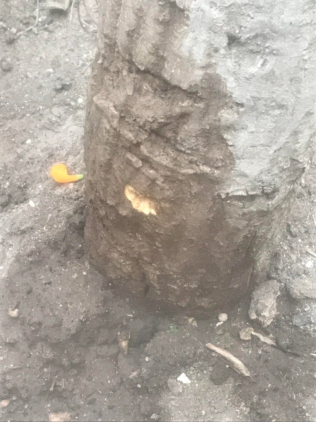 The leaves are already browned, decaying though it could just be due to the season. Either way it could be in a weakened state so im already worried. Ive cleaned the wound as best as i can with water. any thoughts or input would be appreciated dearly. thanks x