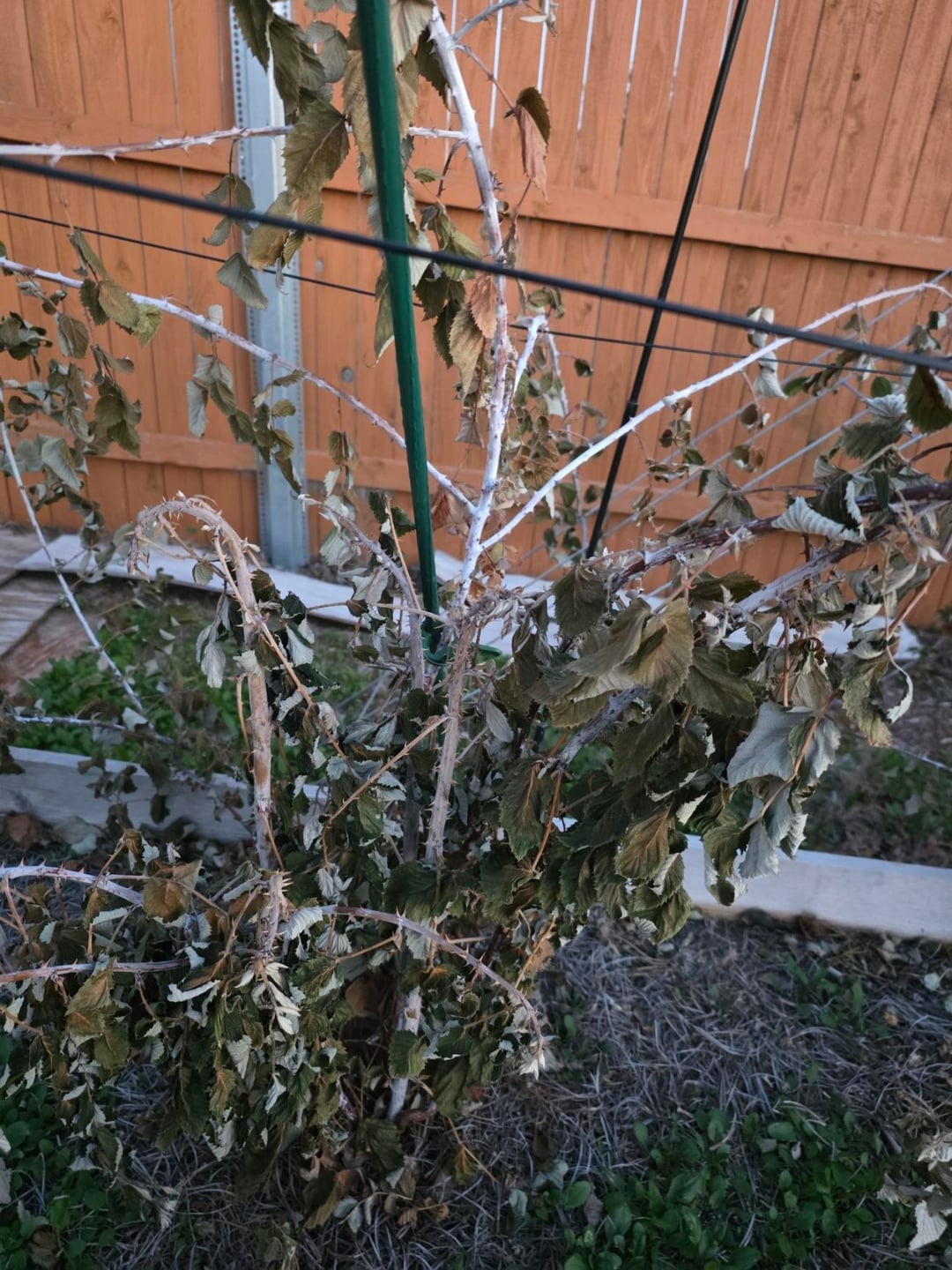 These are Mysore raspberries I put in the ground about a year ago and a few weeks back here in San Antonio we had a few days of below freezing weather (with rain, which encased things in ice). I read these raspberries were fine in hot and cold weather, but I think the freezing rain may have done them in. Is there any chance of them coming back? Wait and see? Prune?