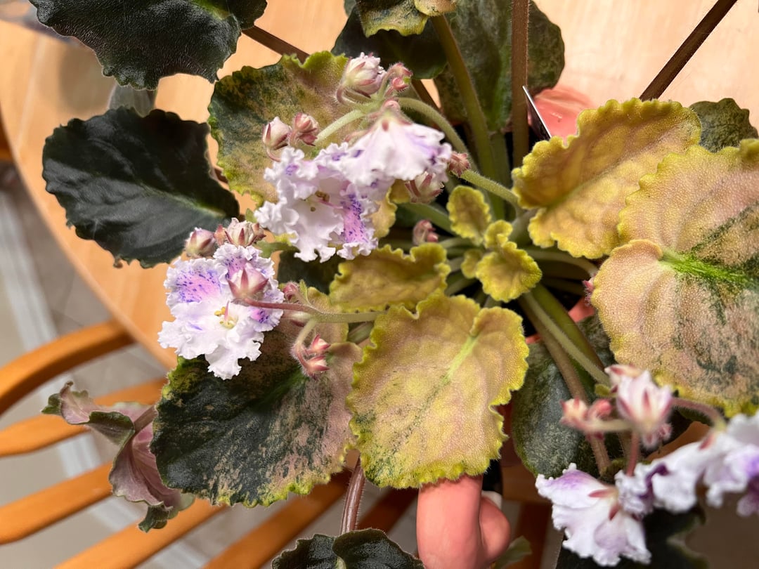 I’ve had this Harmony’s Love Bug since May or June. It came to me leggy and has only gotten more and more leggy in spite of getting the same light supply as my other AVs.