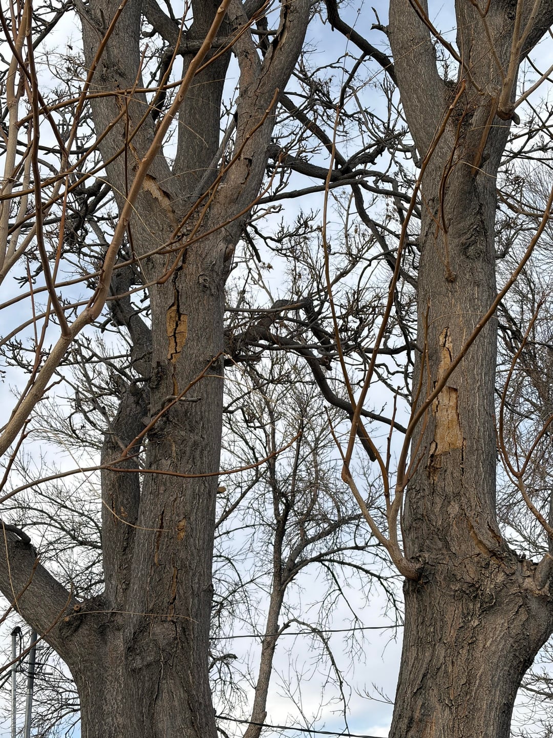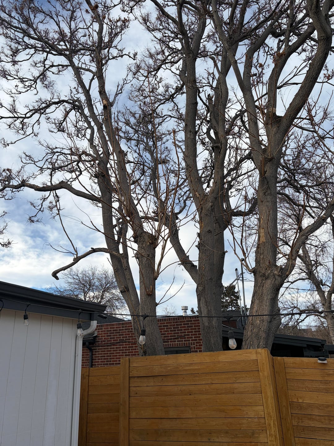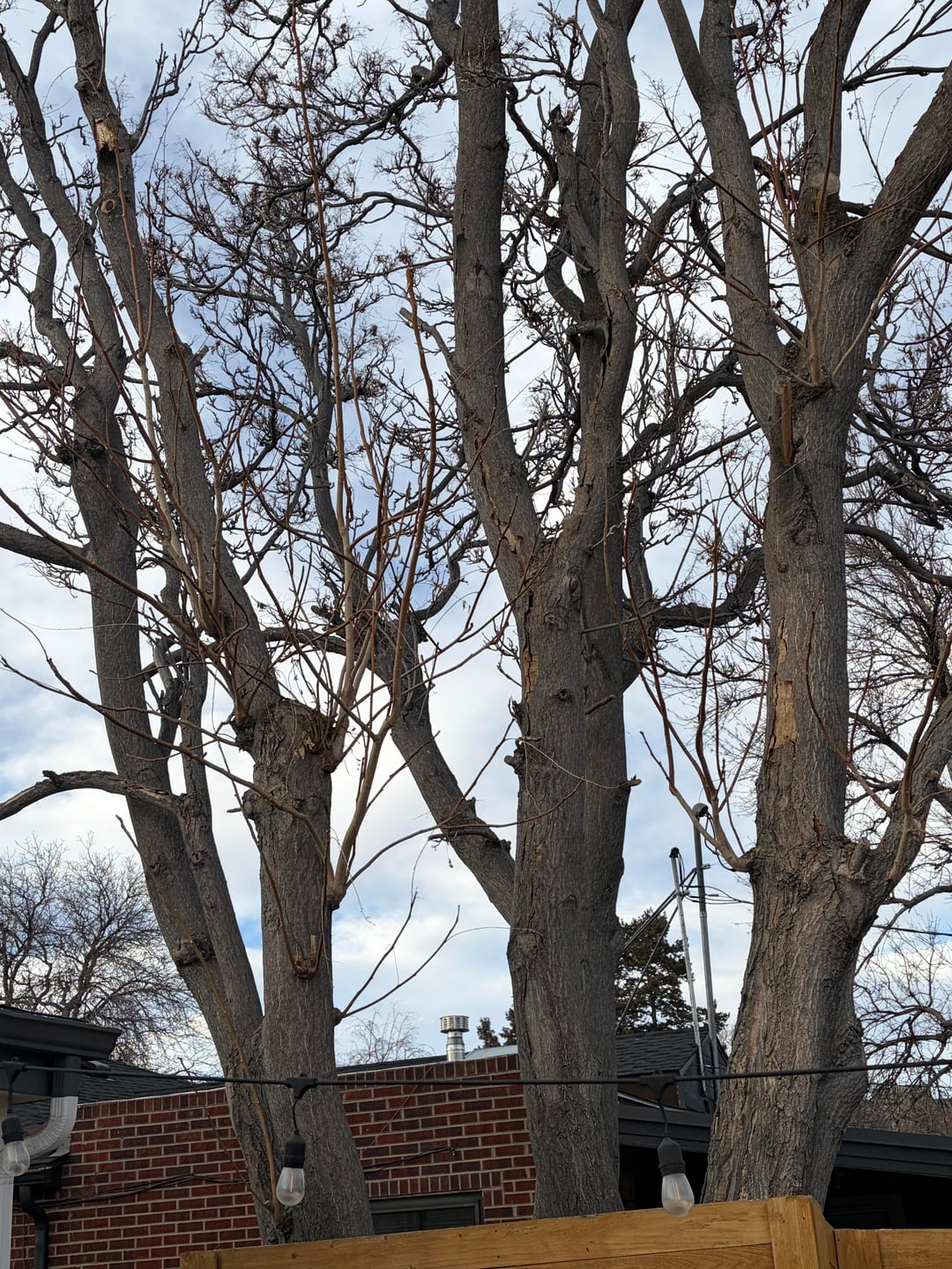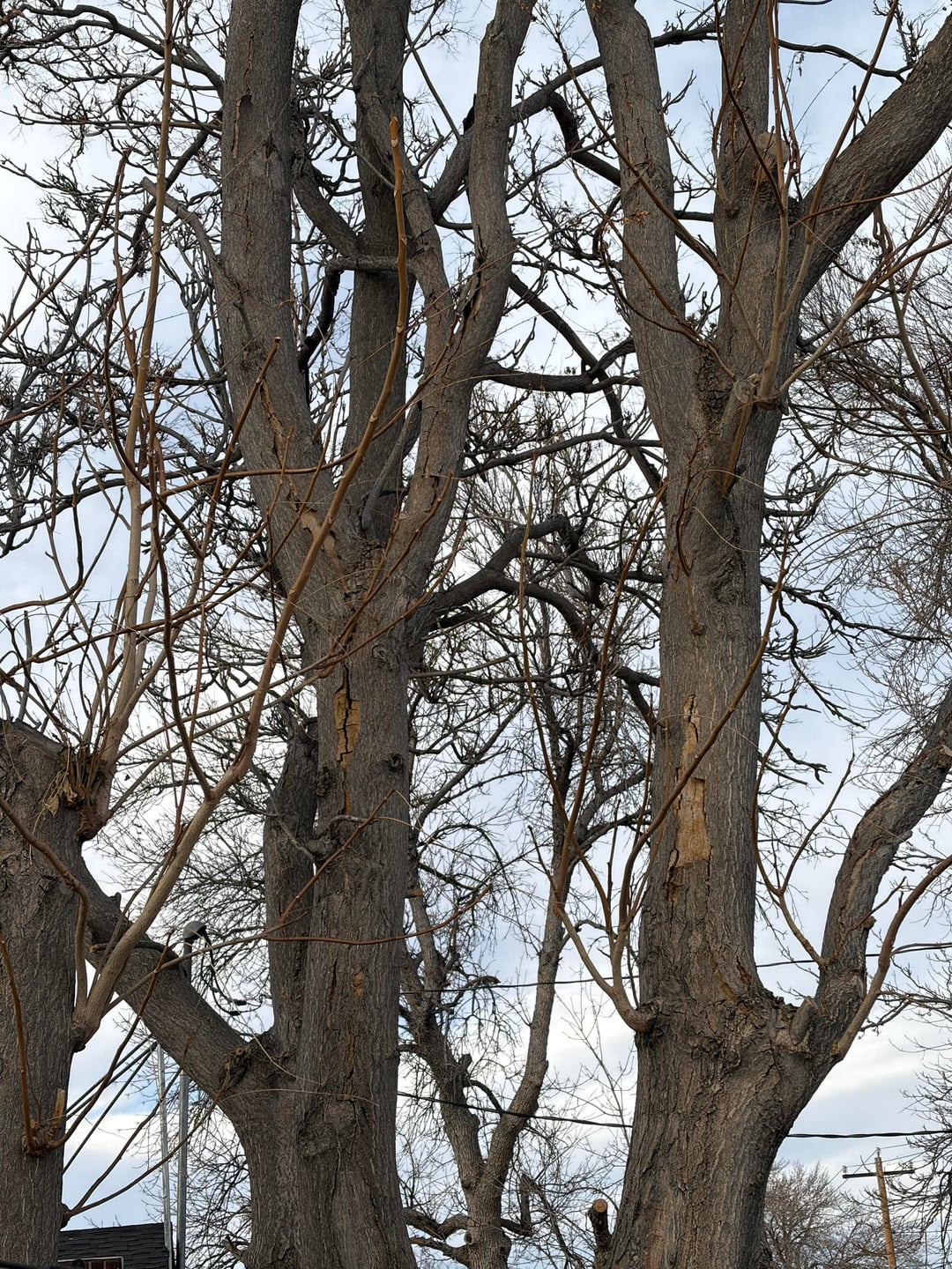 There is a tree/giant weed in my neighbor’s yard and it’s very close to my house and property line. It looks like it’s dying and could be a major risk if heavy winds or snow arrives. I’ve included pictures and I am seeking any advice or recommendations.