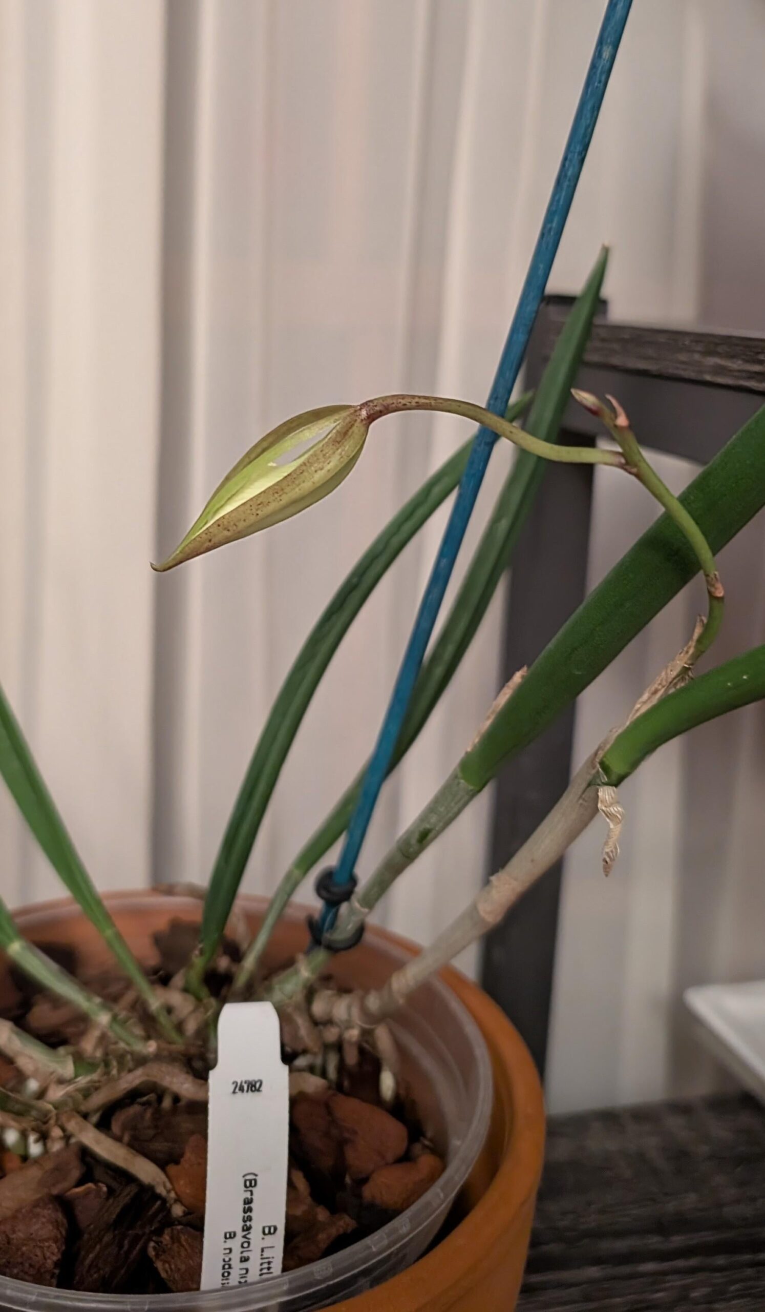 My Brassavola 'Little Stars' finished its first bloom, and it has begun to open. It is only partially open, but already the scent is divine. I heard they had a nice scent, but this might be my all time favorite!