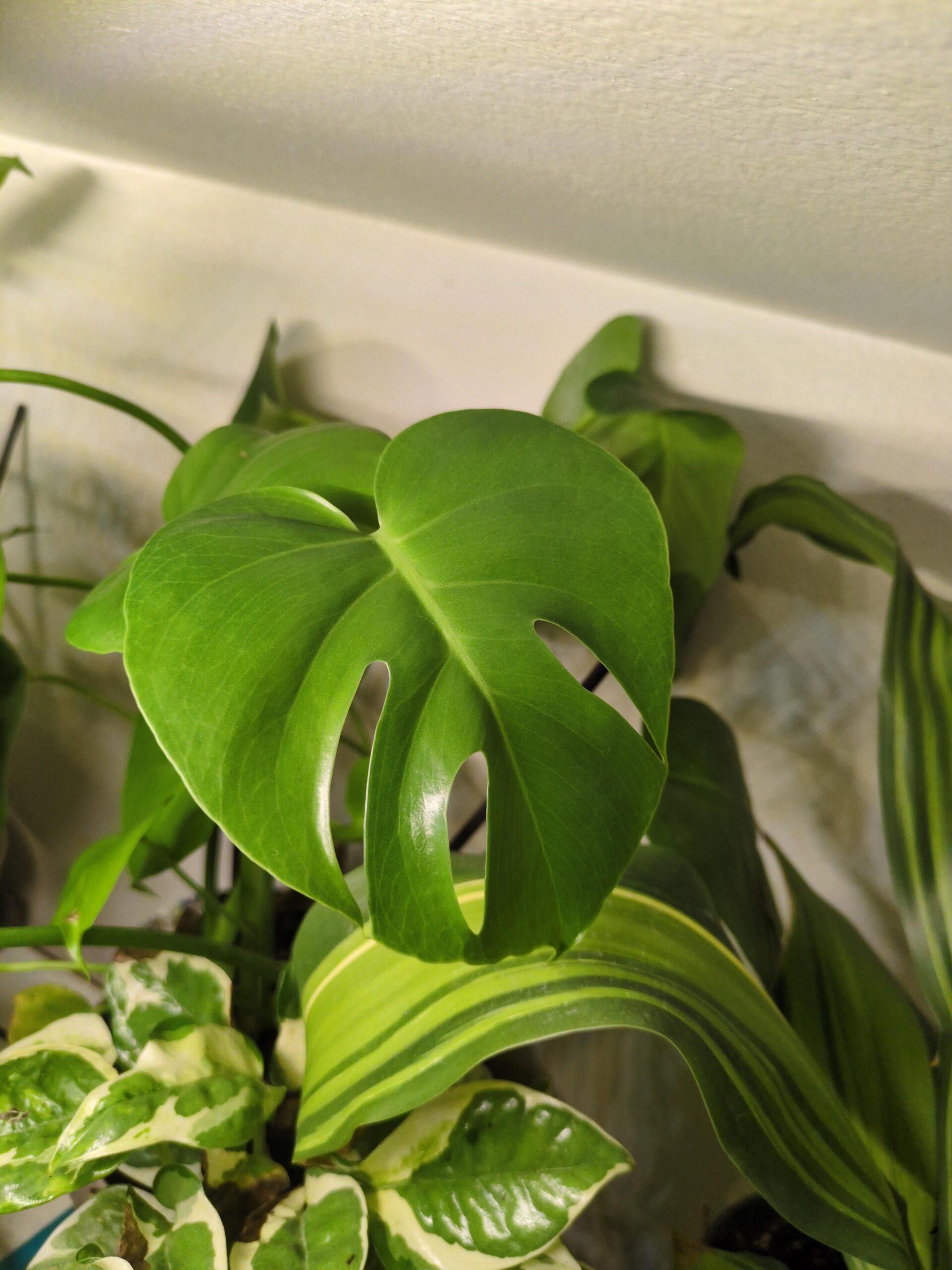I got this girl as a young rescue. At first, I thought she was a philodendron (mislabeled at the store), but I realized that the growth pattern fit a monstera more. I recently put her under a grow light and gave her some support, and honestly haven't looked at her closely since.