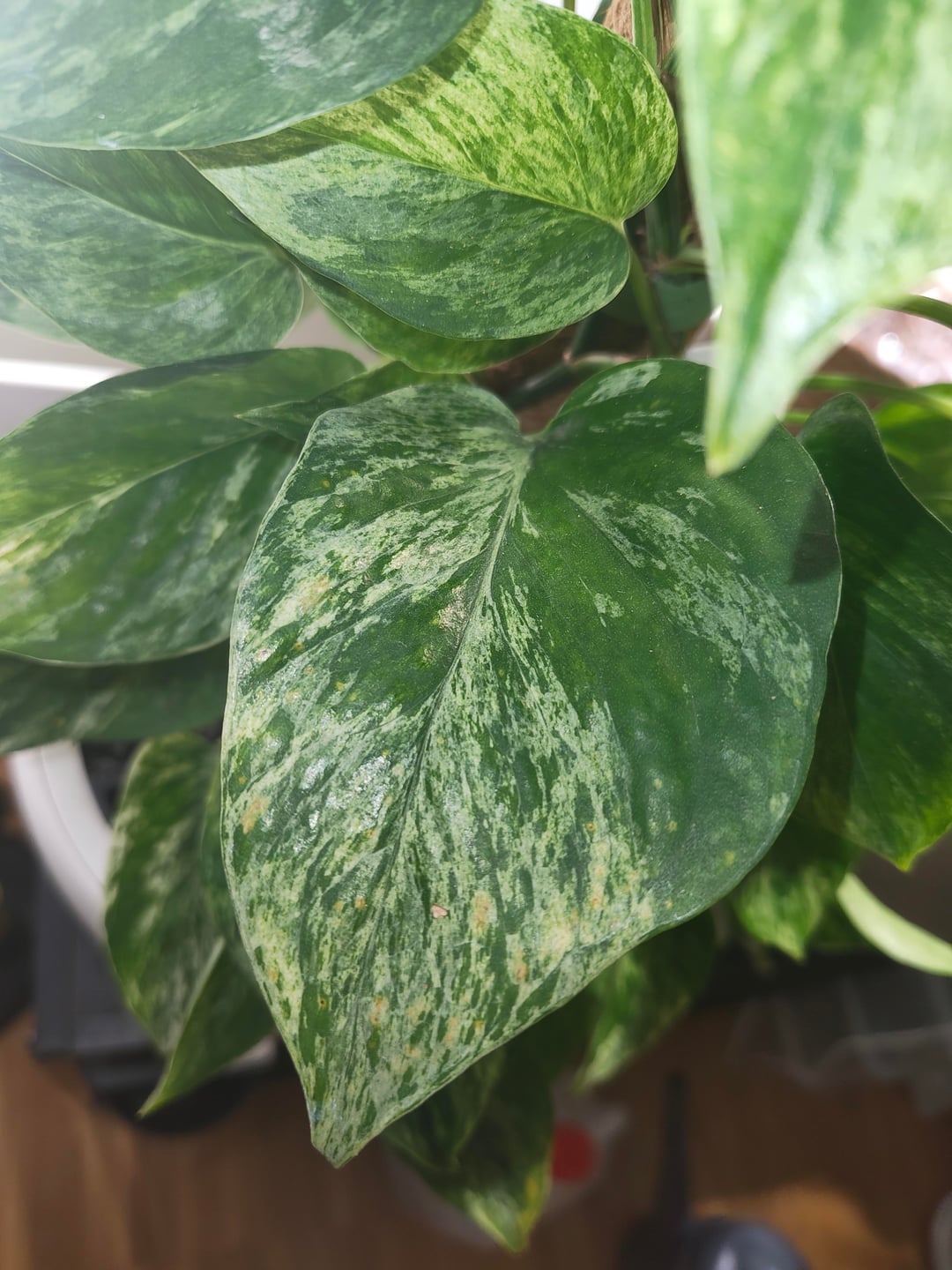 my pothos got some "speckels" on the leafs, and i'm unsure what it might me…