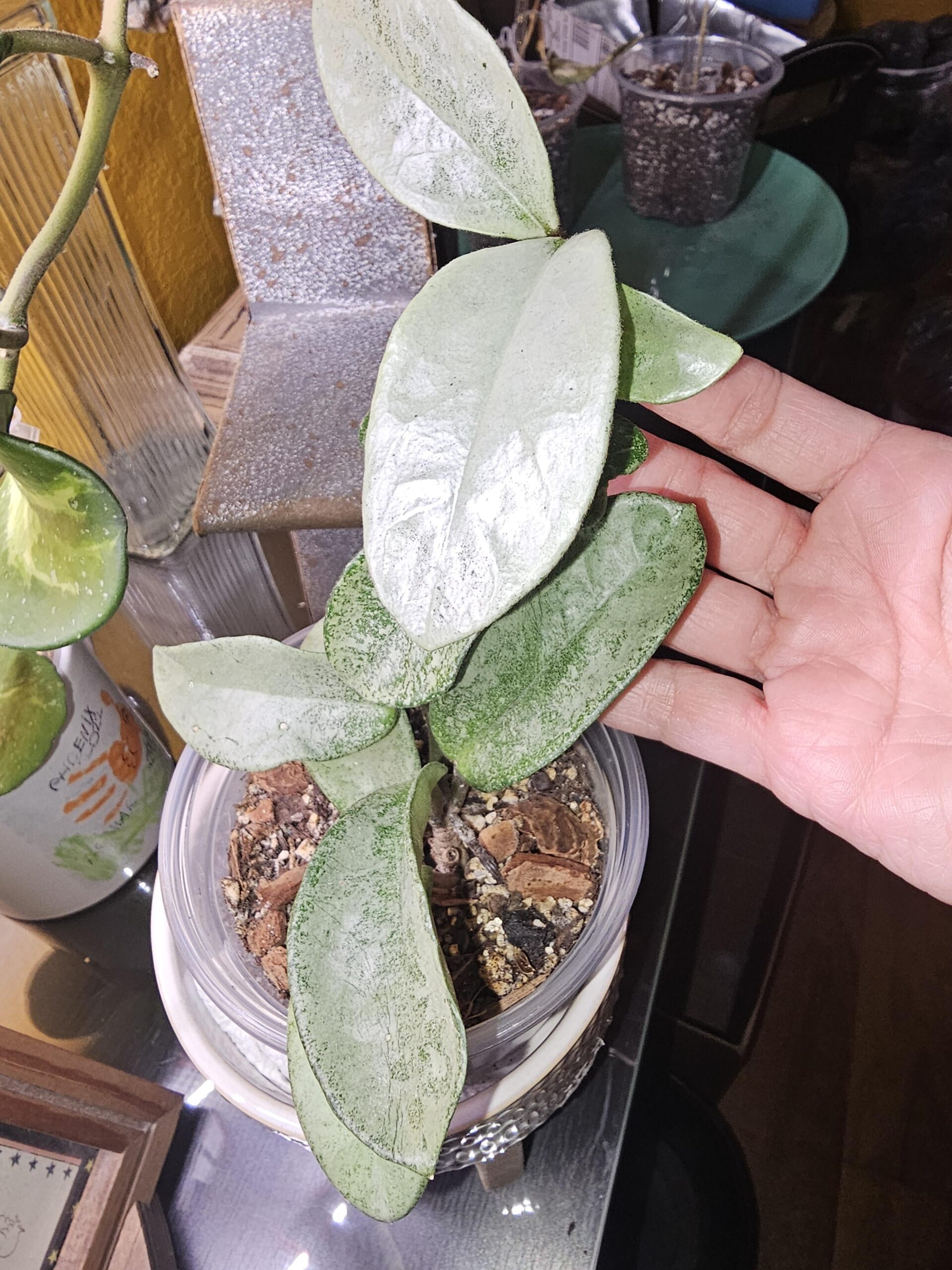 I think this is my nova ghost. The leaves are turning more silver. I like them to have some of the darker green in them similar to the lower leaves. Do I have them under too much light? by csd249 hoya 1 Comment Sundadanio 4 days ago opposite of reverting…. it’s getting more variegation. If you want less variegation give lower light