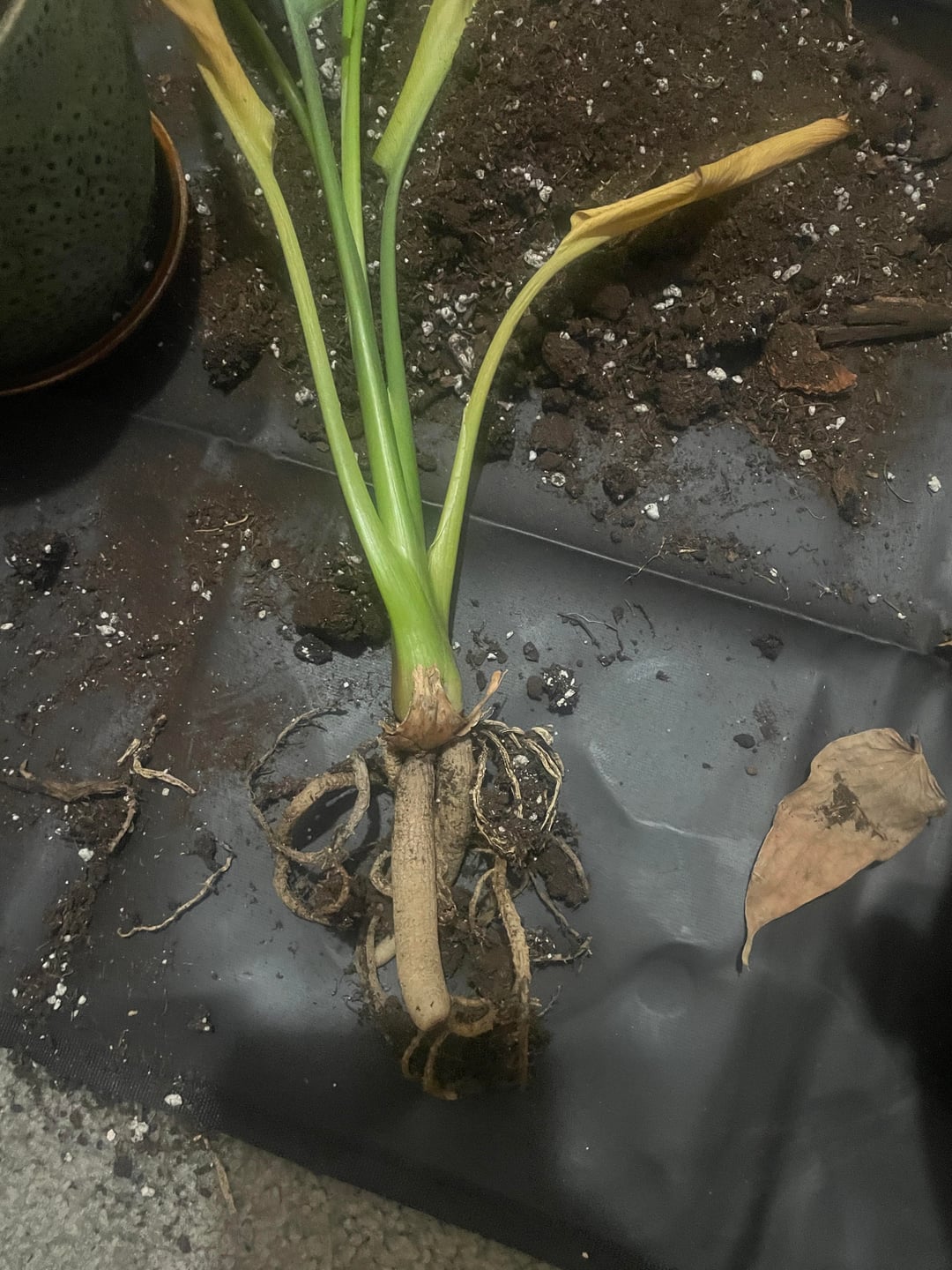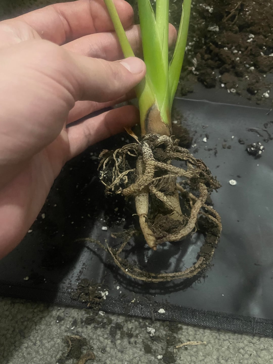 Hi one of my BOPs is really struggling and I’m not sure why. One of my suspicions is root rot, the smaller roots are very hard but the large one feels like a carrot that’s a little bit past its prime, is this root rot? The heat in my house also went out for a few days about 3 weeks ago, could it be this? Other possible issues? I water approximately one every 1.5 weeks when the soil feels dry. It lives in a south facing window getting indirect sunlight plus light from a grow light. I also live in Southern Ontario so wintertime does not give it much light. Any help is really appreciated I really love this plant