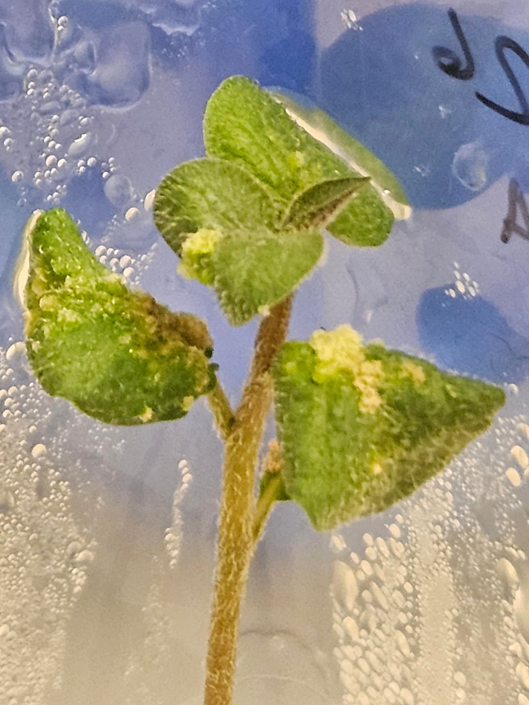 I am propagating potatoes from stems in boxes with nutrient media (so no watering needed yet) and these ones are growing weird stuff on their leaves.