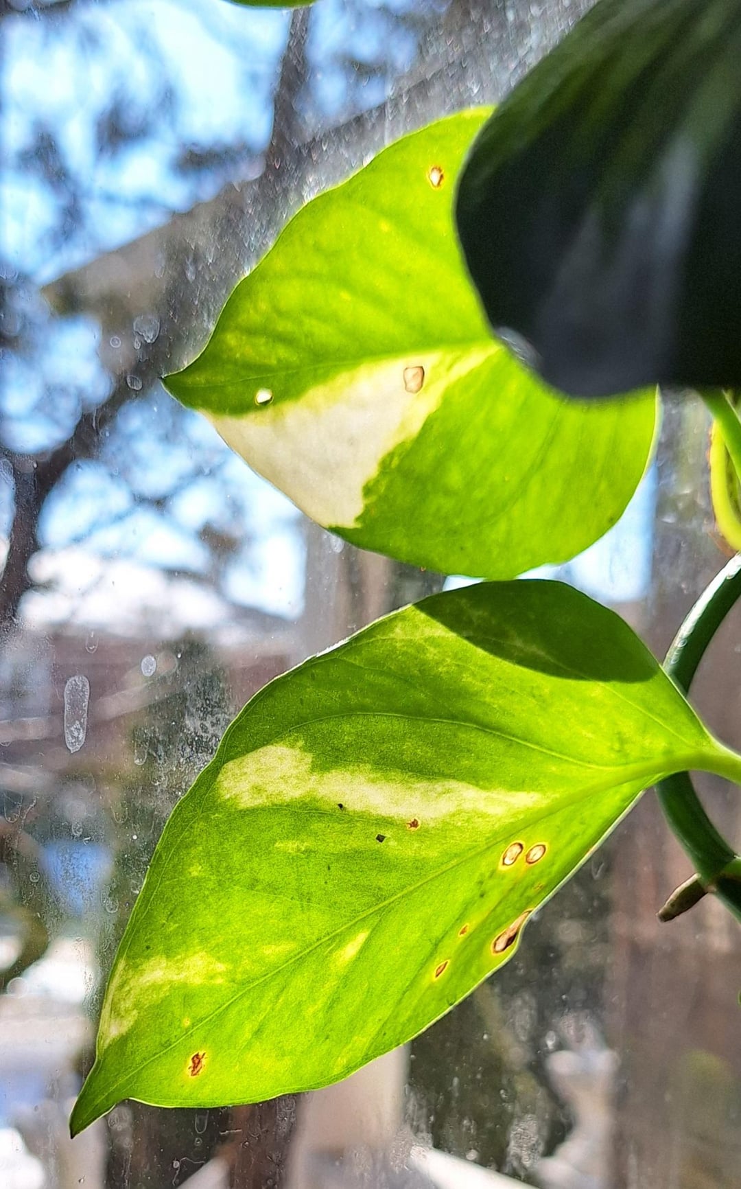 Is this sun burn or bacterial? The leaves facing the window all started to have this. But the other side is ok. My house can get hot and dry from the radiator. Can I still chop up and propagate these or is it trash? TIA by s0rilla pothos 3 Comments trisomie52 3 days ago I just did the exact same post 3minutes ago :’) Either_Locksmith_632 3 days ago Looks like sunburn a_fizzle_sizzle 3 days ago Could be bugs, lack of humidity, and/or roots unhappy. Are you amending the soil so it’s nice and light & airy?