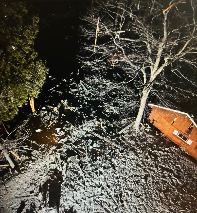 While the house is considered a complete loss, a nearby garage on the property is still standing as of this report.