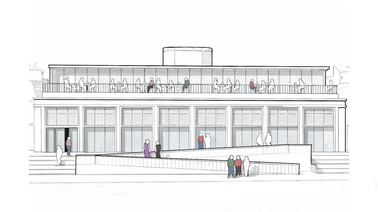 A new rooftop restaurant is proposed above the Main Hall, making use of the site’s panoramic sea views.