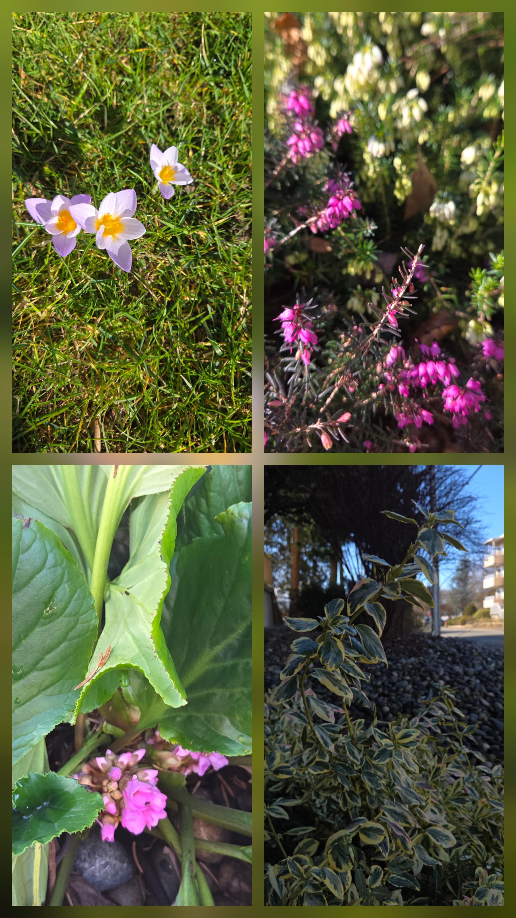 1 Crocus. I’m not sure which species. 2 is Heather, Erica sp. 3 I don’t know. 4 Eunymous japonicum.