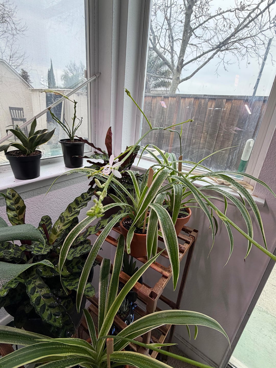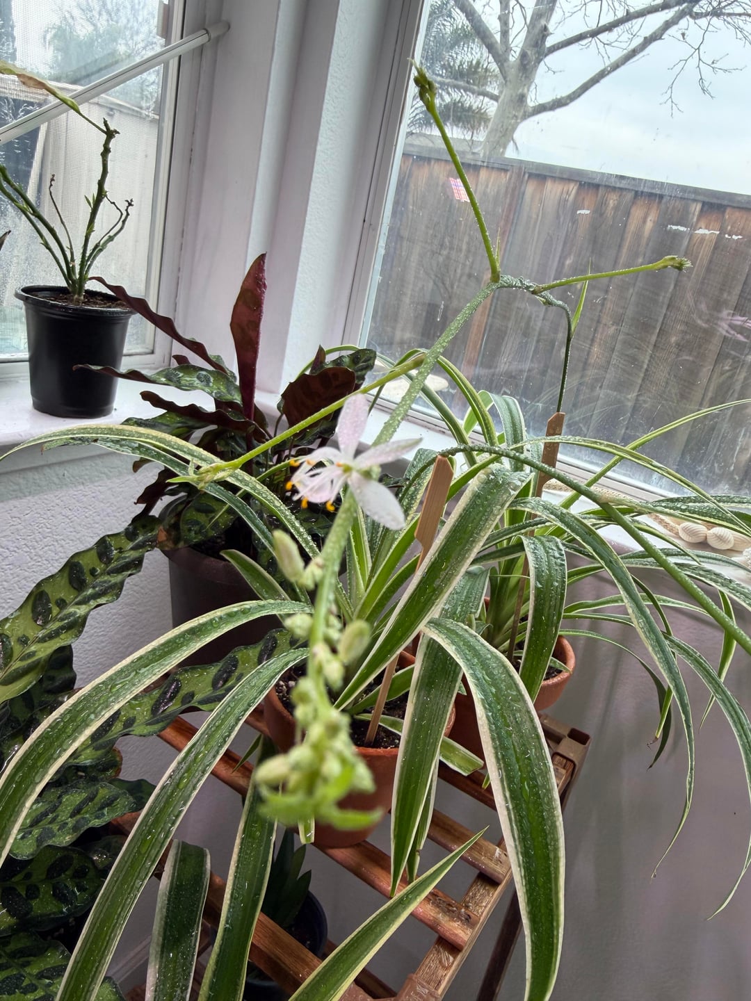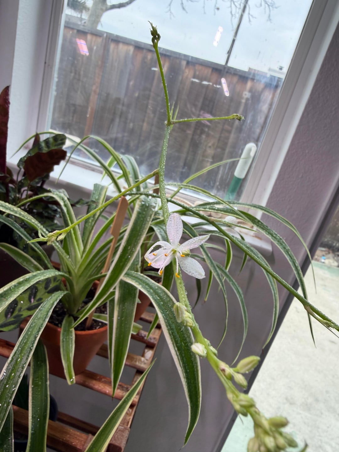 So surprised when this appeared out of the blue, i thought i get baby spiders straight up 😆 , excuse my bald, single leaf, white ponsietta plant in the bsck