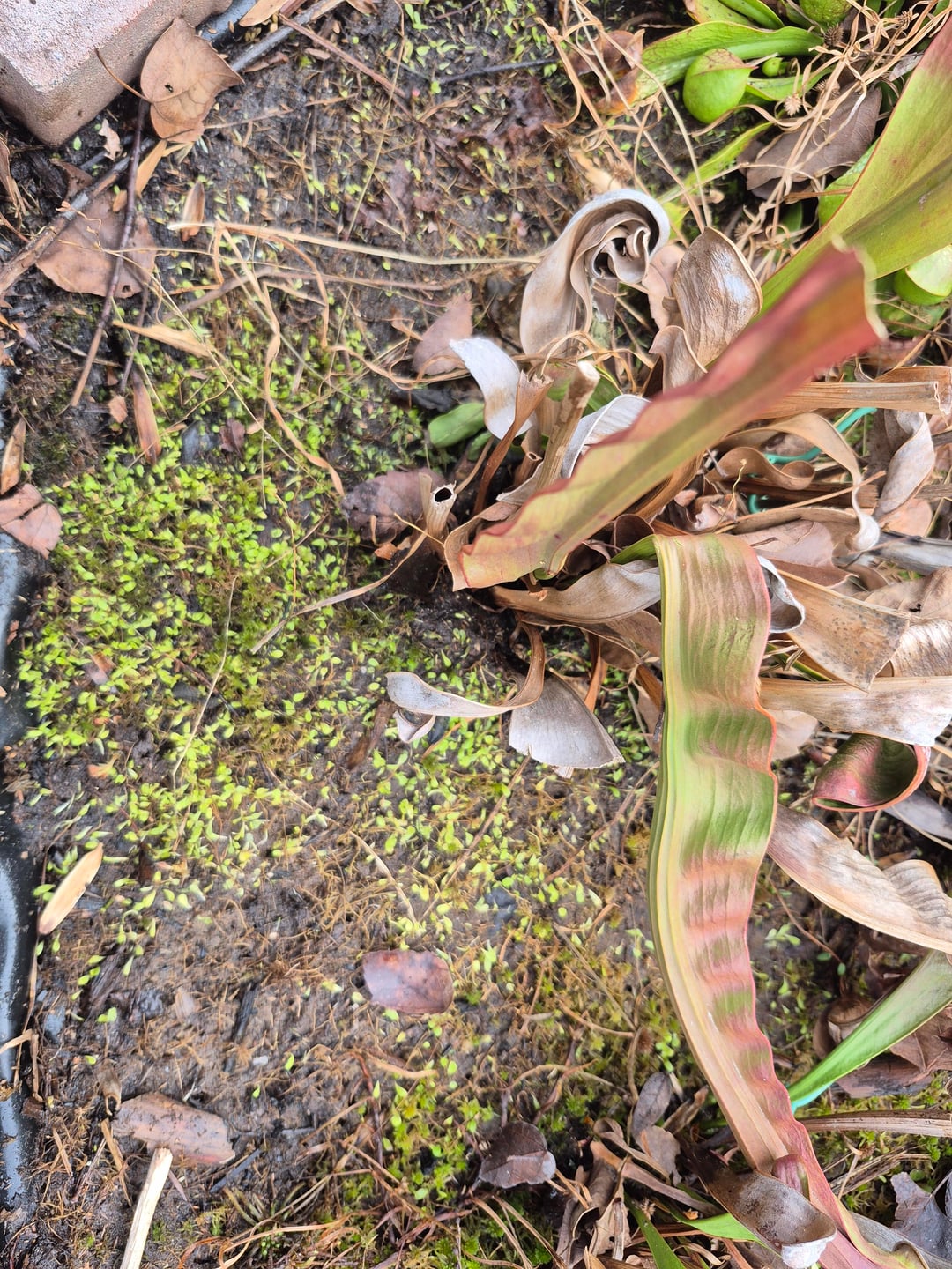 It was 71 F today; go figure. I pulled back some of the mulching on my outdoor bog. And my U. livida appears to have spread like invasive clover. 🙂 I wasn't sure how it was going to do outside, but it appears to be doing well. It's out competing the sphaghum in places.