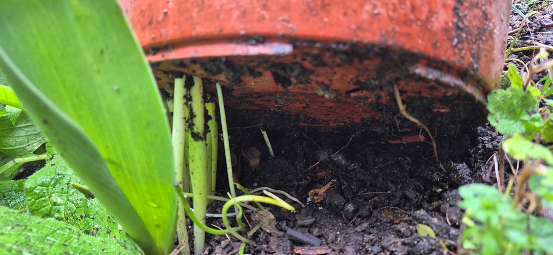 Well, i didn’t remember planting bulbs in this thing, so I tried to straighten it out and saw what had happened….