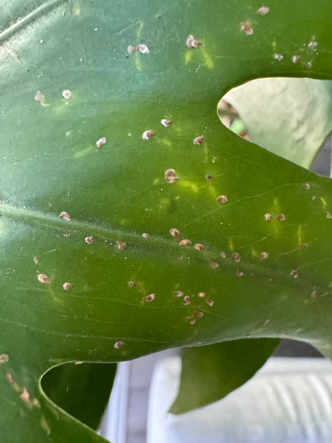 Hi friends – wondering if anyone can confirm if this is scale on my monstera? It is indoors but next to a screen window. This is close to multiple other monstera plants but the only one with these little flakes. Thanks in advance! by Leimolihua monstera 4 Comments Leimolihua 2 days ago EDIT: marked NSFW for any trypophobes 🤢 AsukaWasHereToo 2 days ago Yes, those are scale. ThurmanMermannnn 2 days ago Wow. Yes. Pitiful_Succotash393 2 days ago what a wretched pest. i hate scale most of all. it never dies.