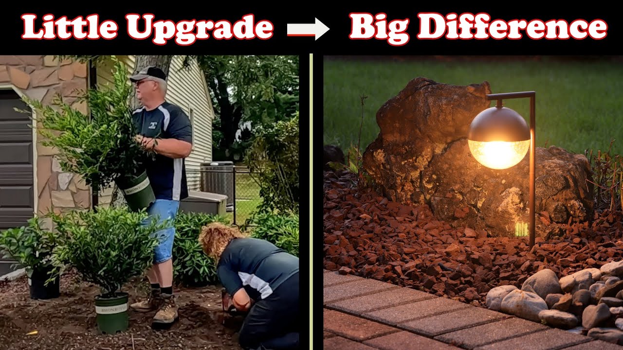 This was a small landscape upgrade — just a few new plants, decorative stone, and lighting — but it made a big difference! 🌿✨