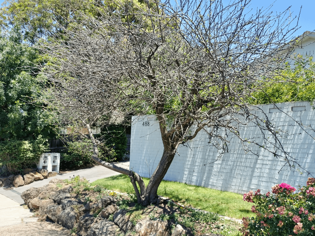 I have an old ornamental plum tree (circa 70s build) that died back this summer it had partial flowering and small leaves ok n the branches that flowered. No growth over summer, now not pictured is shooting from the trunk base.