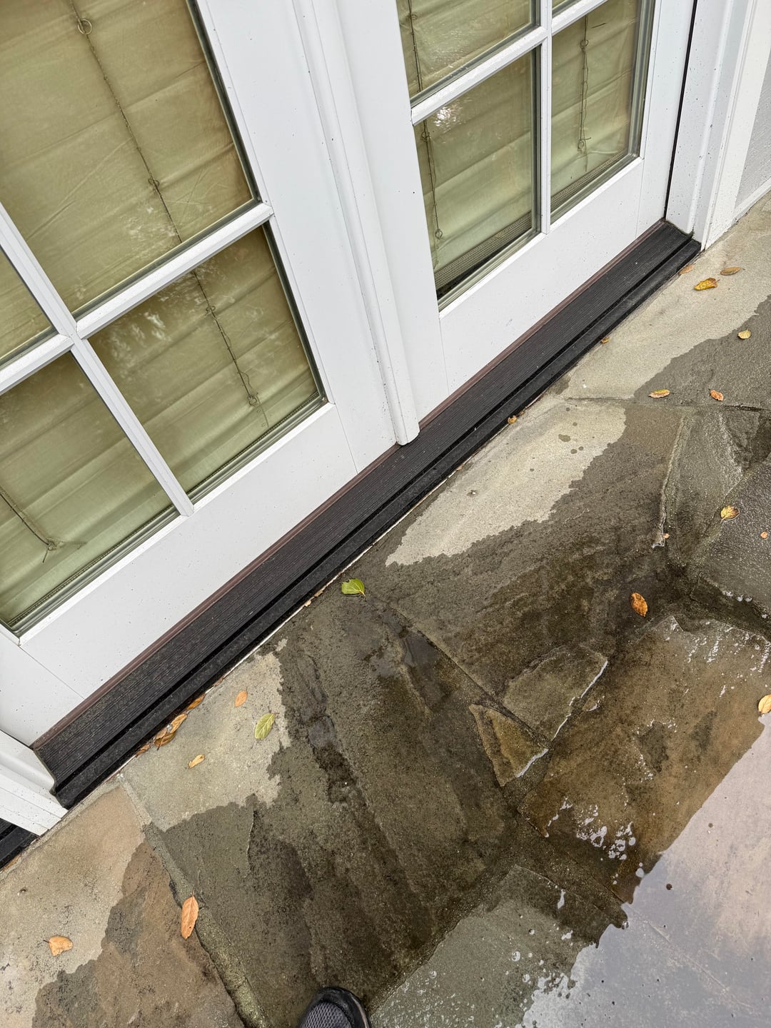 Hello, just bought a house and the water is pooling and moving towards edges sometime. I can’t tell if it was originally built this way, but the stones are uneven in layout. Is there any easy fix or is it normal? This is after a night of rain – there are two drains in the middle of this patio area that got rid of most water, but the un even stones seem to be holding some water.