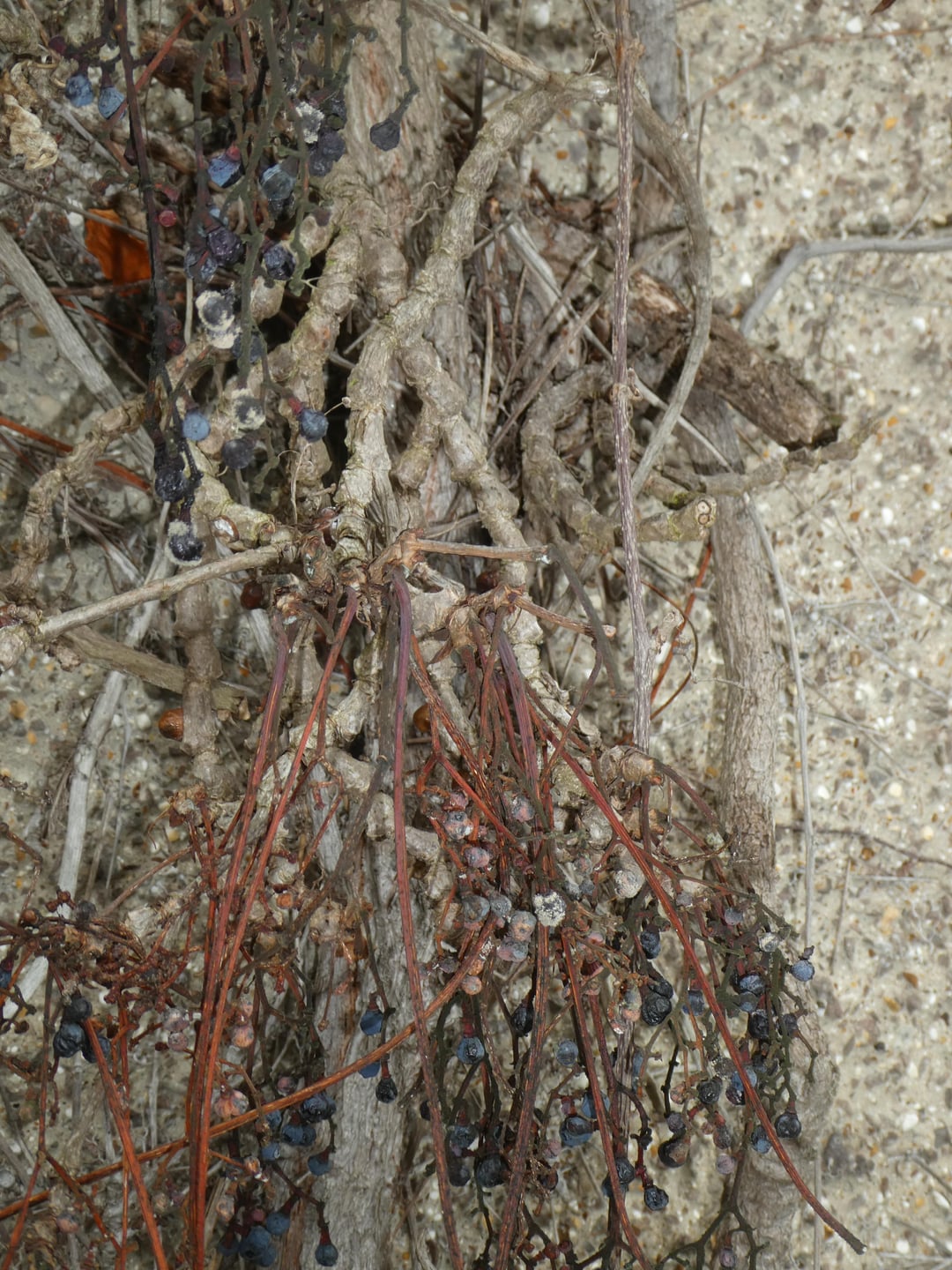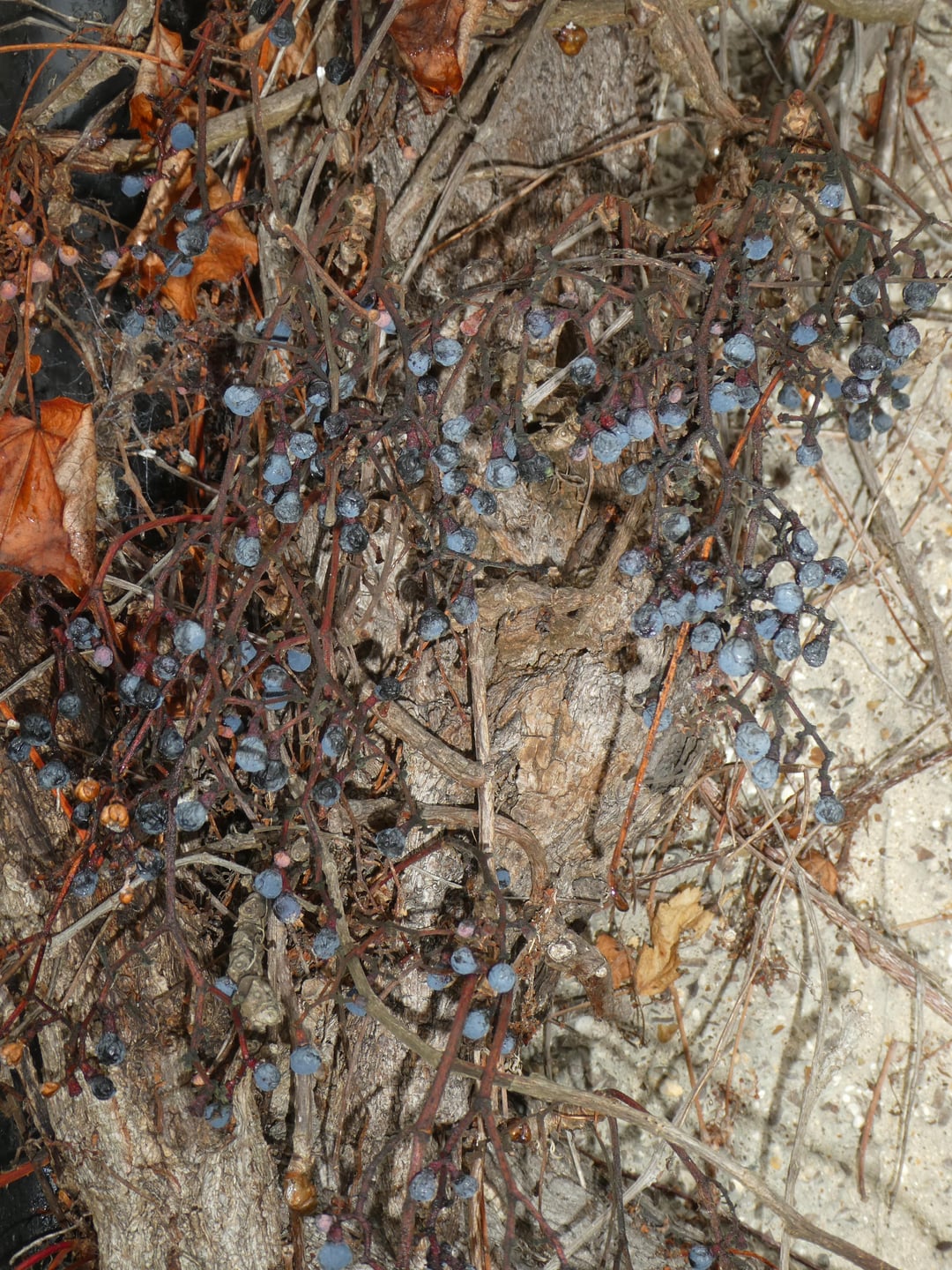My bet would be Parthenocissus sp.. None of them native to the “UK”. Berries and sap are laden with raphides (microscopic calcium oxalate needles) which means you **should wear gloves when handling any part of the plant**. **Don’t eat or let your pets eat any part of it**.