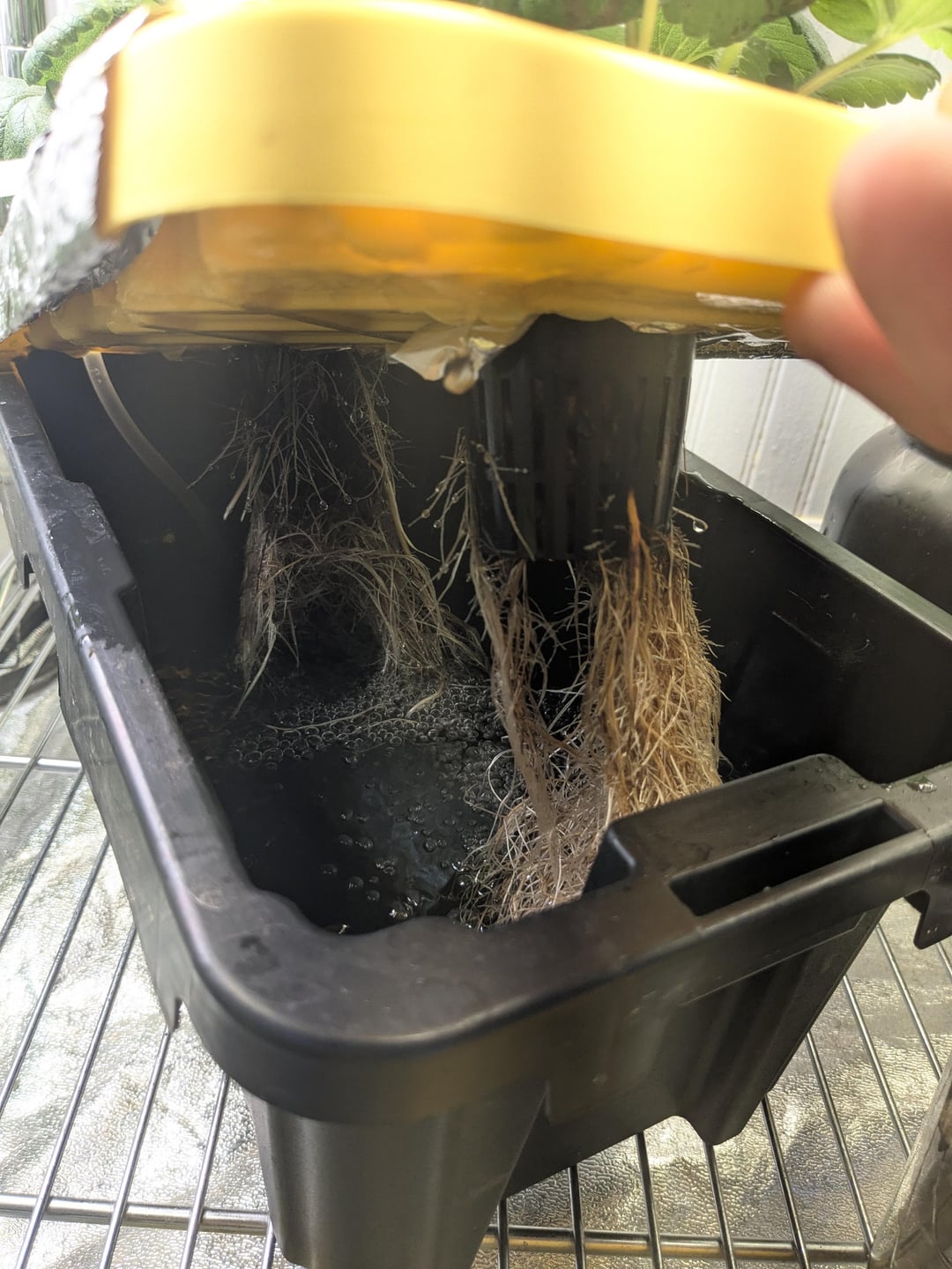 I started 8 seascape strawberry bare root plants in Dwc setup maybe two months ago. They were doing poorly so after some died and I put a few in soil- I'm left with these. I change out water every two weeks (probably less often honestly, Everytime I do it they die back a lot I feel. I think maybe it's because they are getting moved around and shocked). They seem to be doing much better in this smaller 6.5 quart container. When I had several more plants going I had them in larger container with same air stone. I do feel like the ones closest to the air stone have done the best and that's why these are doing better in this size container. Anywho I'll take any advice. I only started hydro a few months ago but everything has been going great except for these haha.