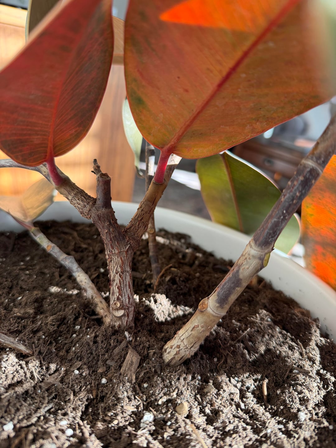 My rubber plant leaves have recently been yellowing and falling off. At the same time it still has new leaves growing so I’m confused what it needs. The stems also seem a little off. Any help appreciated!
