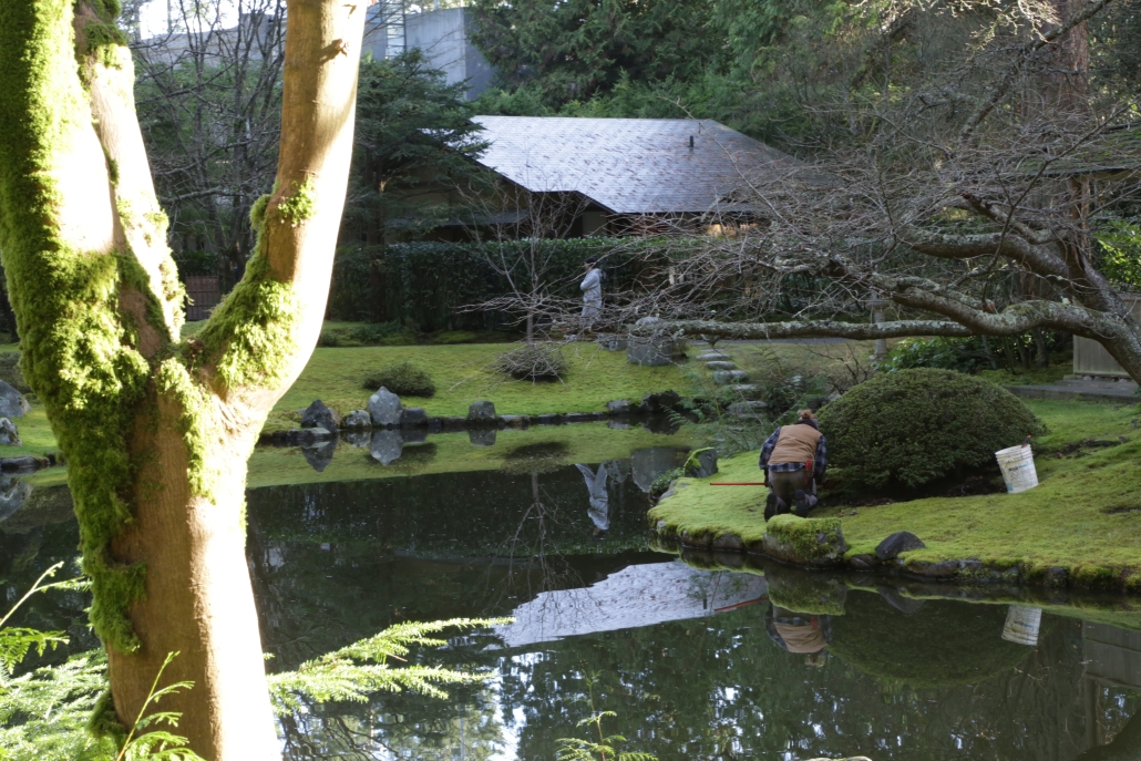 Crews are currently re-constructing one of the garden’s bridges ahead of cherry blossom season, which begins in early March.