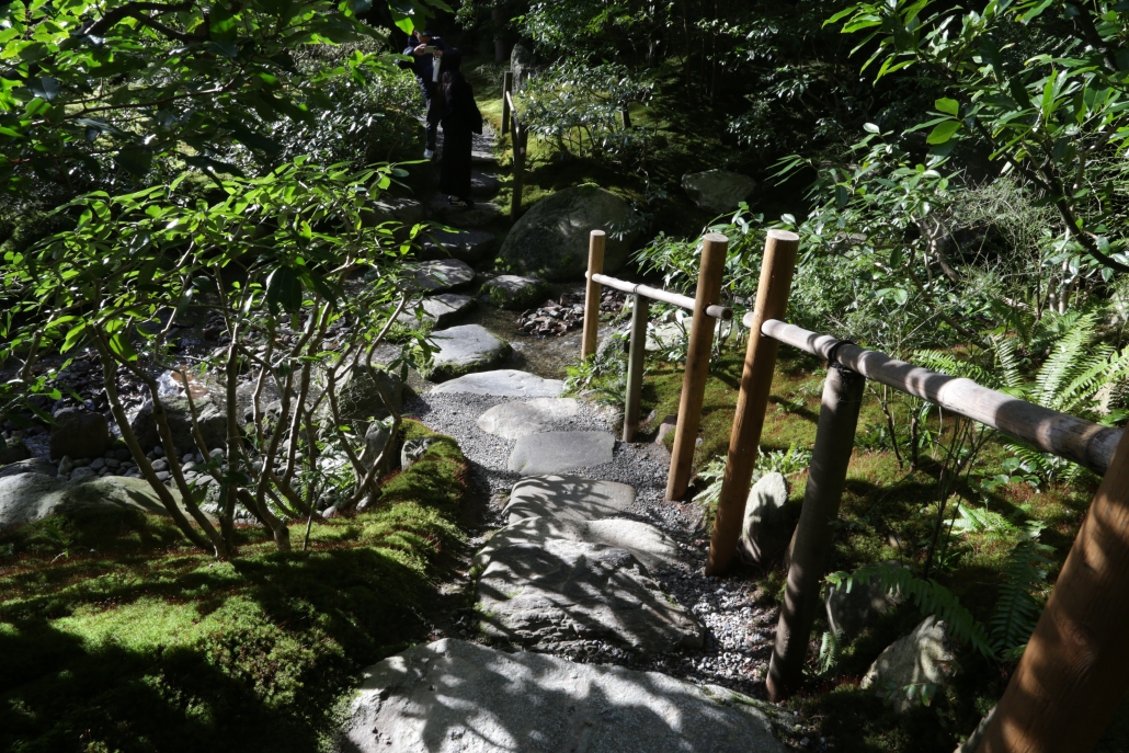 Bamboo railings and stone steps lead to a flowing stream just ahead. (Gabriel Ruy / BCIT News)