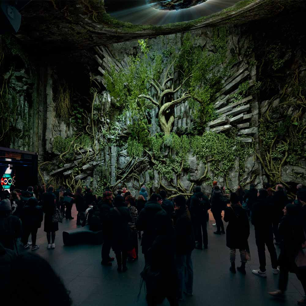 Commissioned by Outernet London – the most visited cultural attraction in the UK – The Intelligence Garden has been conceived specifically for The Now Building, a landmark 23,000- square-foot, four-storey, 360° LED environment with wrap-around walls and ceiling, rendered at ultra-high 16K resolution. Located in the heart of London’s West End, the building offers one of the most ambitious and technically advanced immersive canvases anywhere in the world.