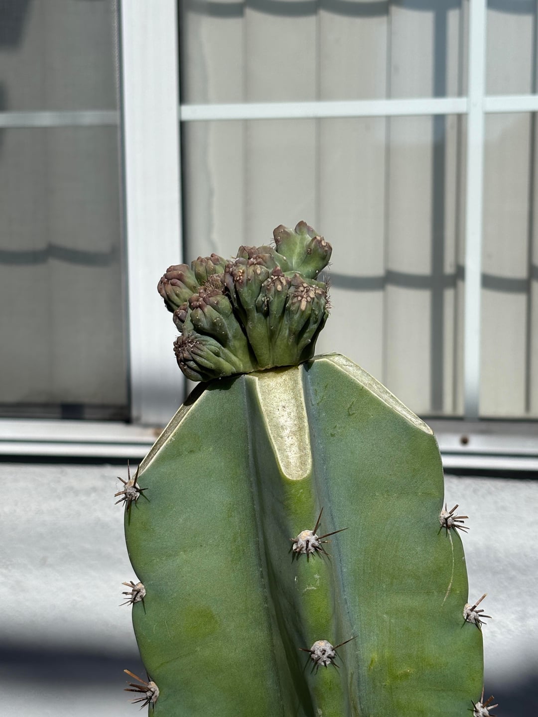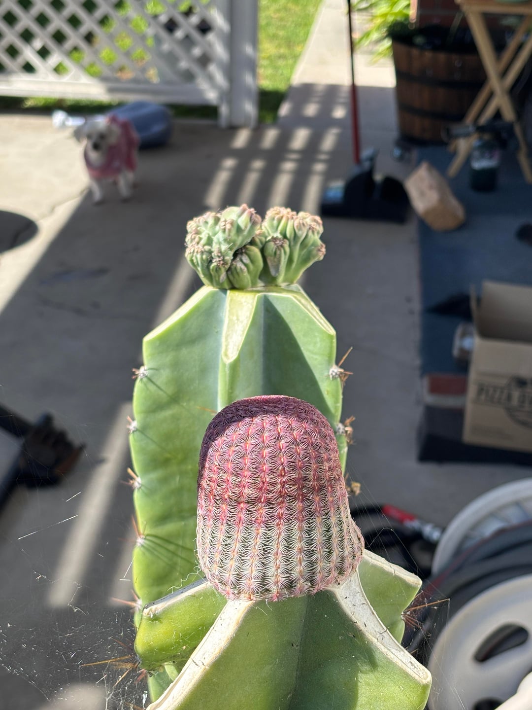 Successful graft of a Cereus Forbessi monstrous onto my cereus apple cactus !