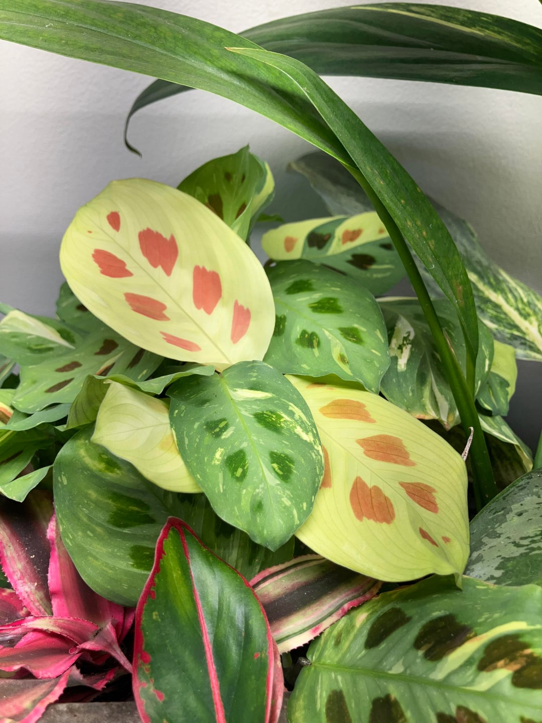 Maranta leuconeura var. kerchoveana variegated, sometimes sold as ‘Beauty Kim.’