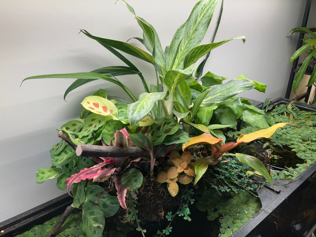 I have this variegated guy in my riparian area in one of my tanks and it seems to be doing very well! It just threw out these three mostly yellow leaves. I thought you all might appreciate it. I’d also love an actual ID. by One-plankton- Calatheas 1 Comment naneth-lin 6 days ago Maranta leuconeura var. kerchoveana variegated, sometimes sold as ‘Beauty Kim.’ I bought one specifically to get those cream leaves with pink dots, they’re my favorite!!