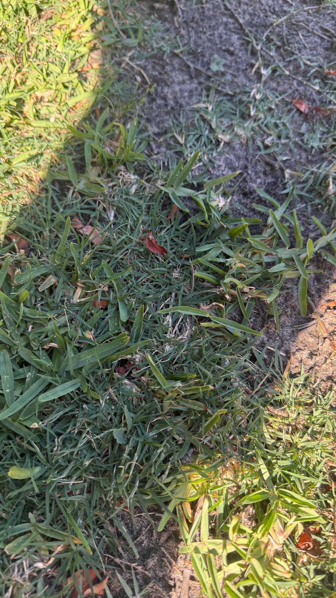 With photos! 🤦🏼♀️ I have Buffalo Lawn, but this different, smaller leaf, almost teal coloured variant has taken off and seems to be taking quicker than the Buffalo. The lawn area itself is quite patchy, my main goal is to fill in the dirt patches so I’m not trecking dirt and mud around, but is letting this grass grow in going to be of detriment come next spring?