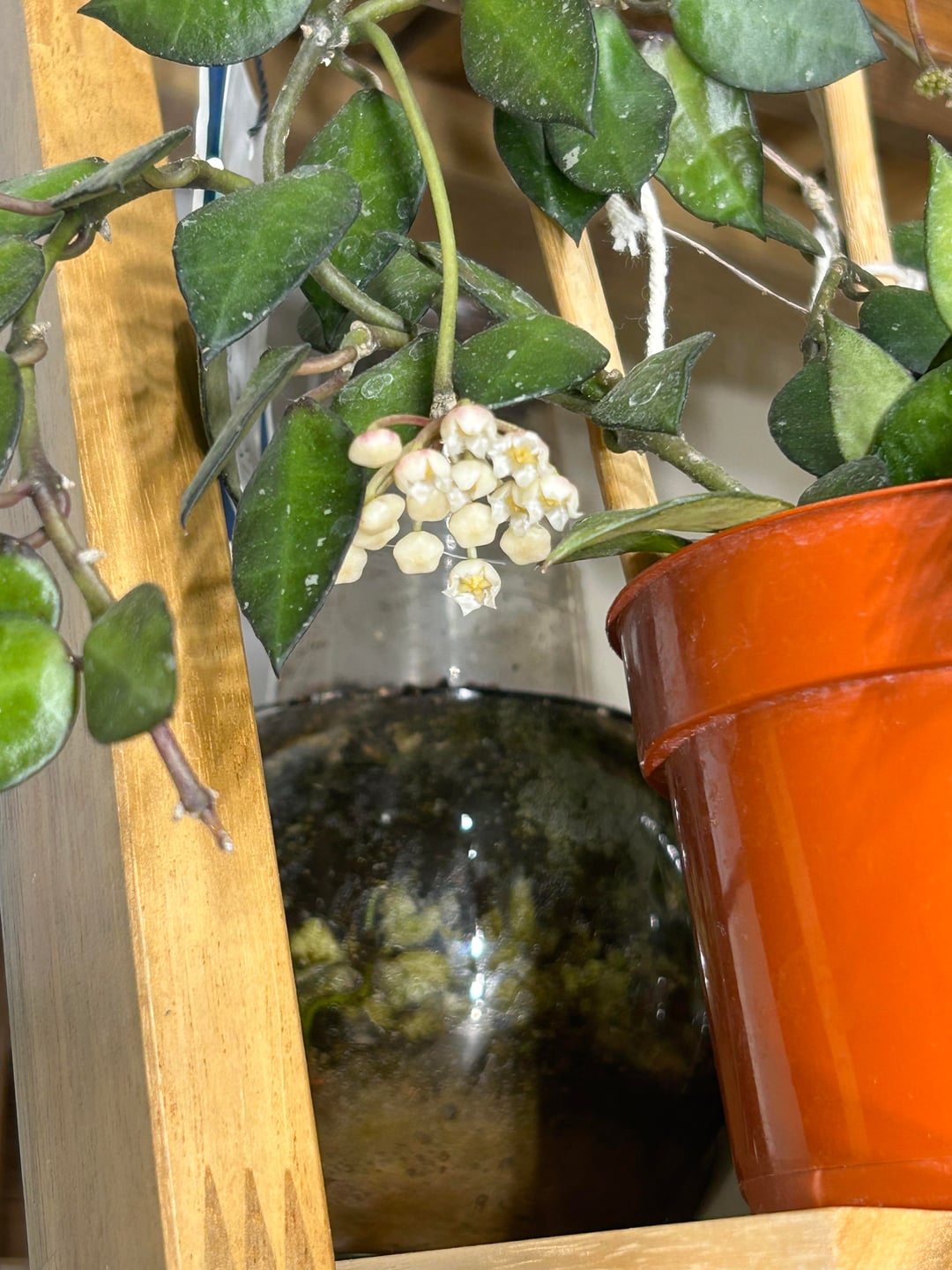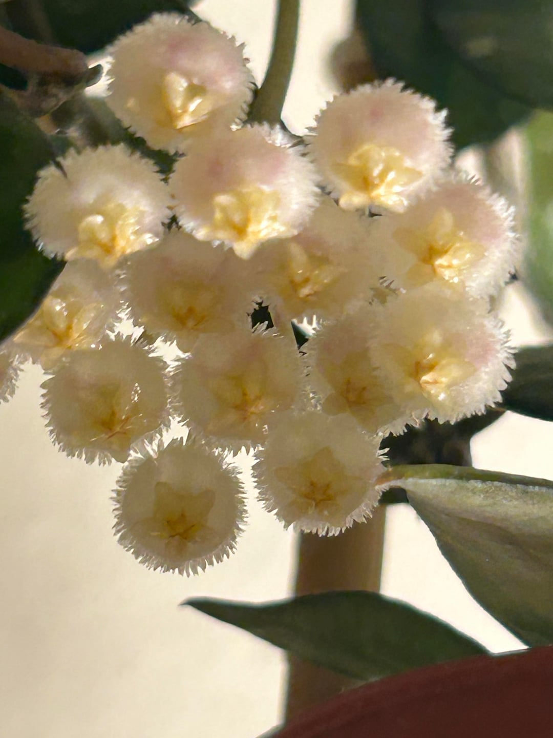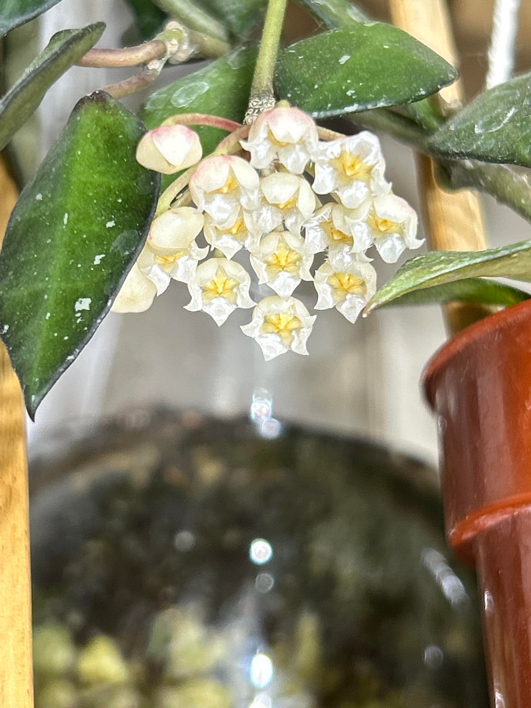 A gift of blooms from hoya khroniana black just in time for Valentine’s Day. Smells like subtle cherry nyquil to me. by Mother-Kale6297 hoya 2 Comments maryalisonf 5 hours ago What kind is this? Beautiful hoya! Fret-it 5 hours ago Haha OP that’s such a specific smell profile lol. Love the description. Also this is gorgeous, and just in time 😉