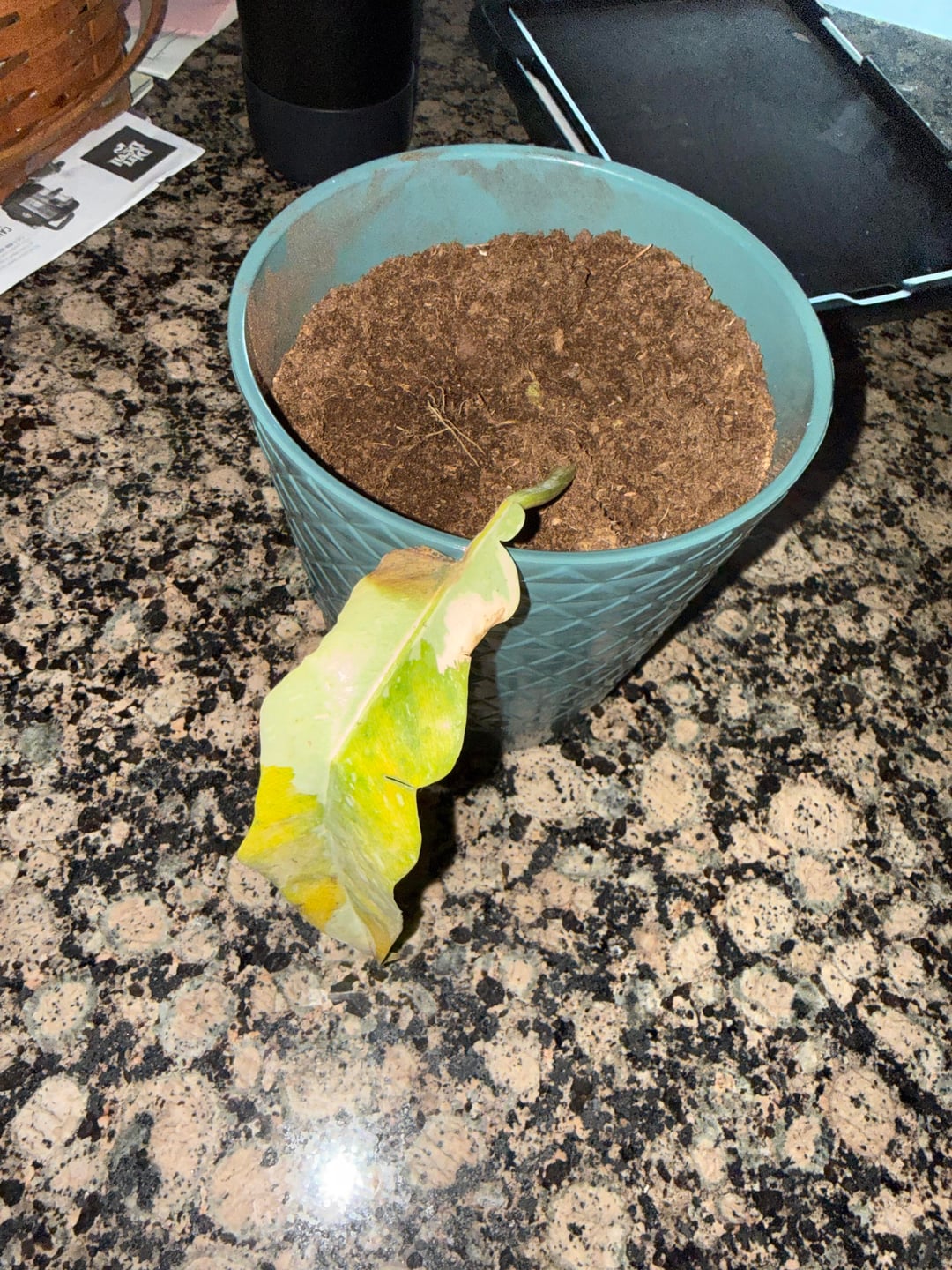 Hello! I need some advice for next steps on this ring of fire philo. I picked them up from the pound (aka home depot during the winter months) because look at it! Unfortunately, most of the leaves were mushy by the root of the plant, and as youll see in the next pic, only one leaf remained. The roots are good, no root rot, or issues etc, just over watered at home depot. The pot is designed for butt chug(bottom watering) but they also watered the top, so we are in the process of drying out.