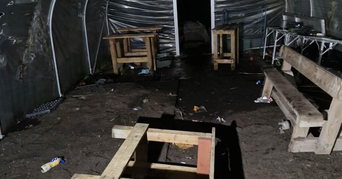 “They’ve completely trashed the whole garden. The polytunnel was ripped all over the place, fences broken, pots and containers all smashed.