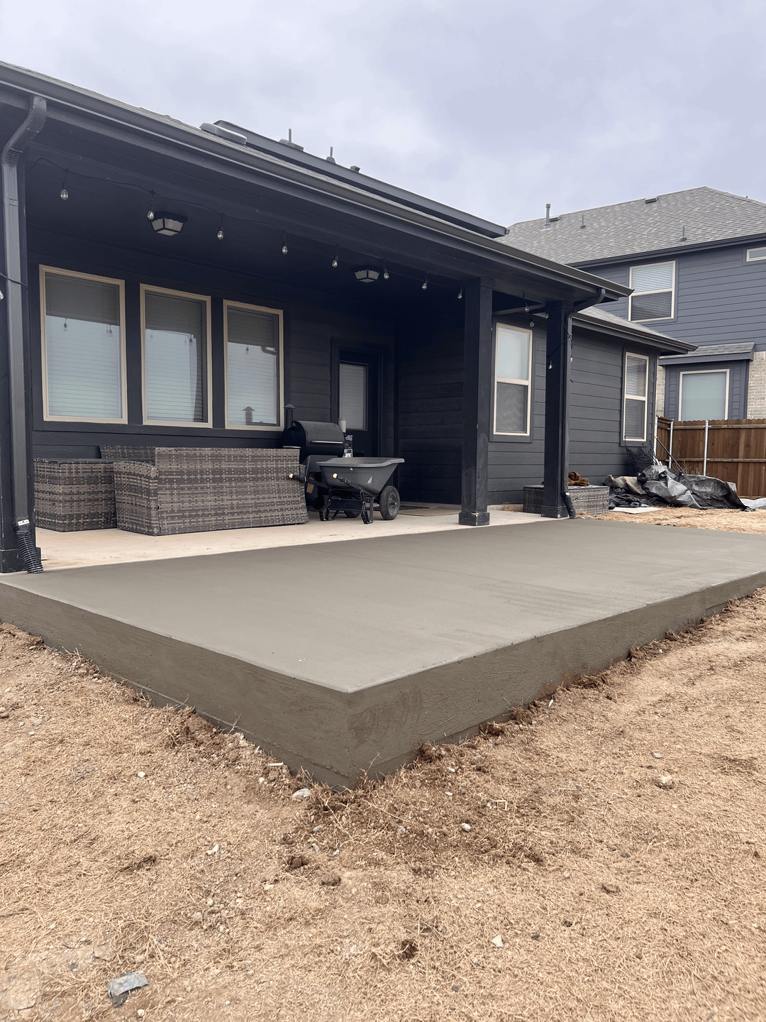 had this concrete patio poured and there’s about a 1.5 ft drop from the slab to the yard.