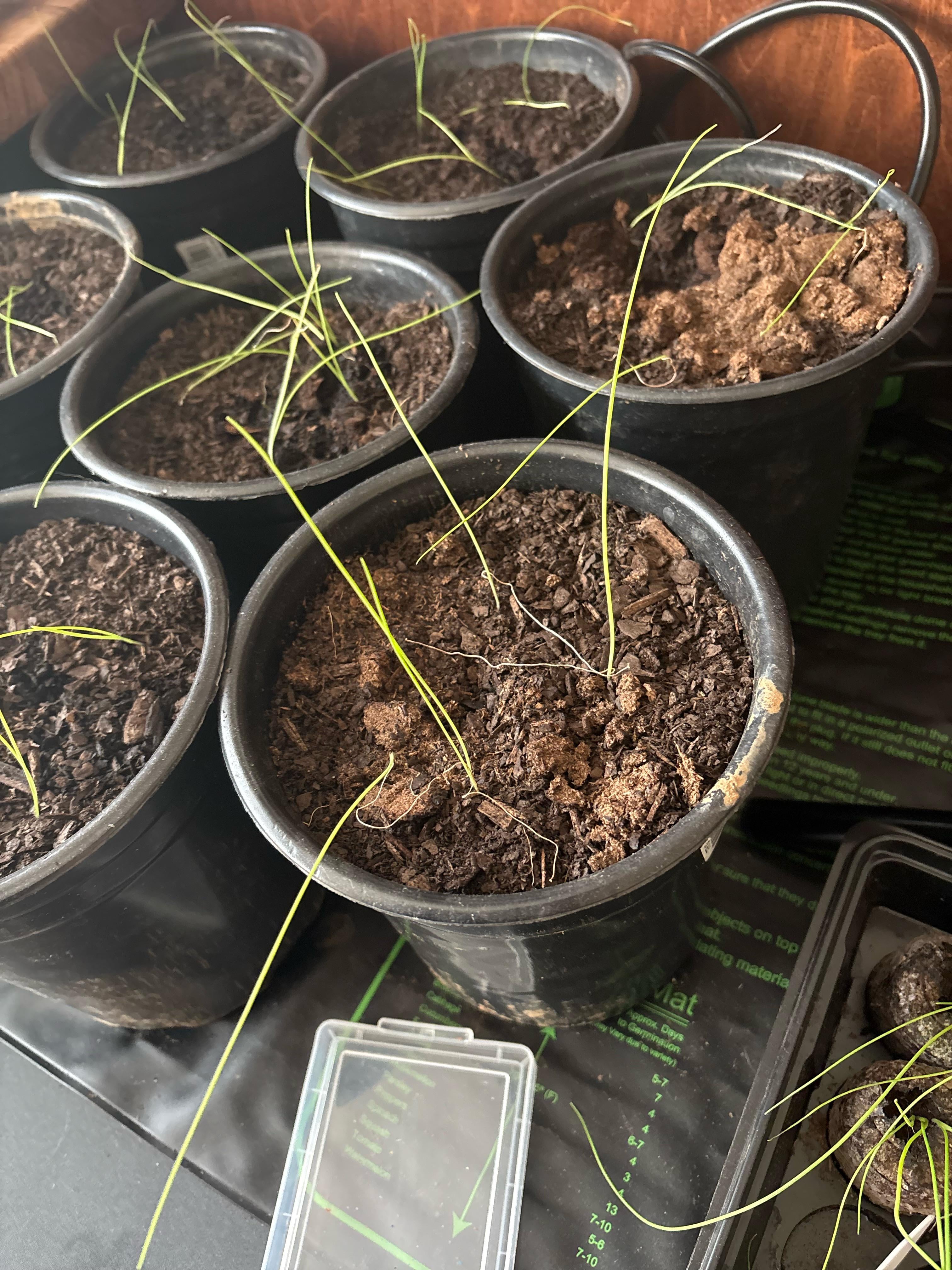 Mine are 3 weeks old and under grow lights. I’ve given them a cut which helps them stand up straight.