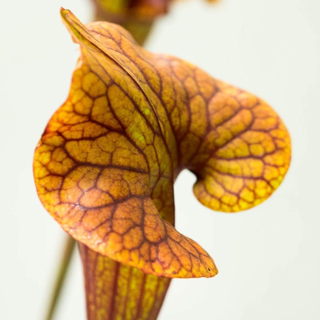 Sarracenia ‘Abandon Hope’😮 The contrast and coloring of the operculum (lid) attracts prey while also preventing rainwater from filling the pitchers and diluting the digestive fluid. #sarraceniaabandonhope #sarracenia #americanpitcherplant #CarnivoreWeek #sdcps #thehorticult