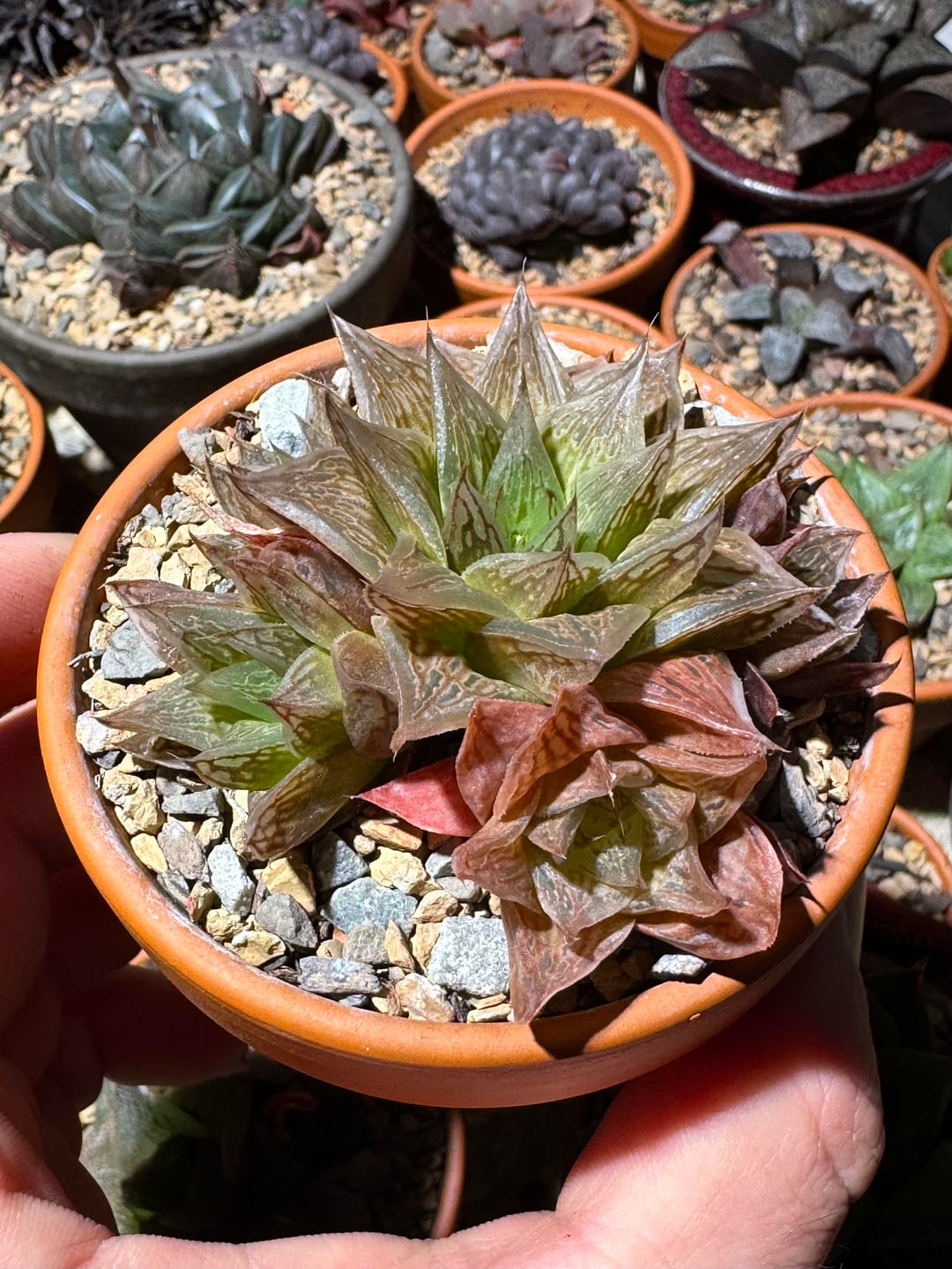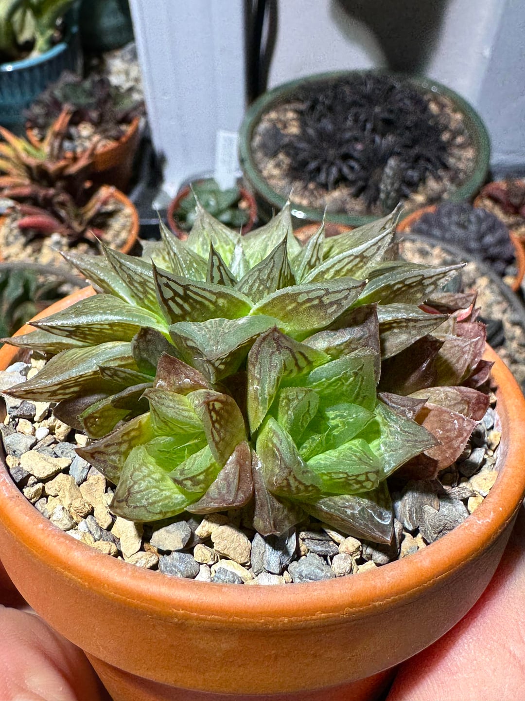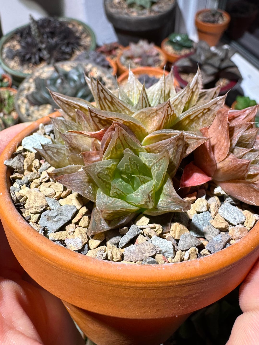 Both plants have had multiple repots since I got them. They’re quite sunstressed as you can see, mostly due to the fact that they live against the south facing window that gets the most natural light. See last pic.