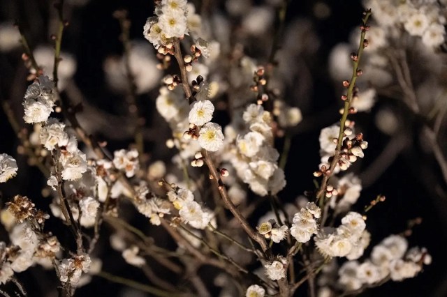 …it gets especially enchanting after sundown, when the colors of the gently illuminated ume pop against the night sky.
