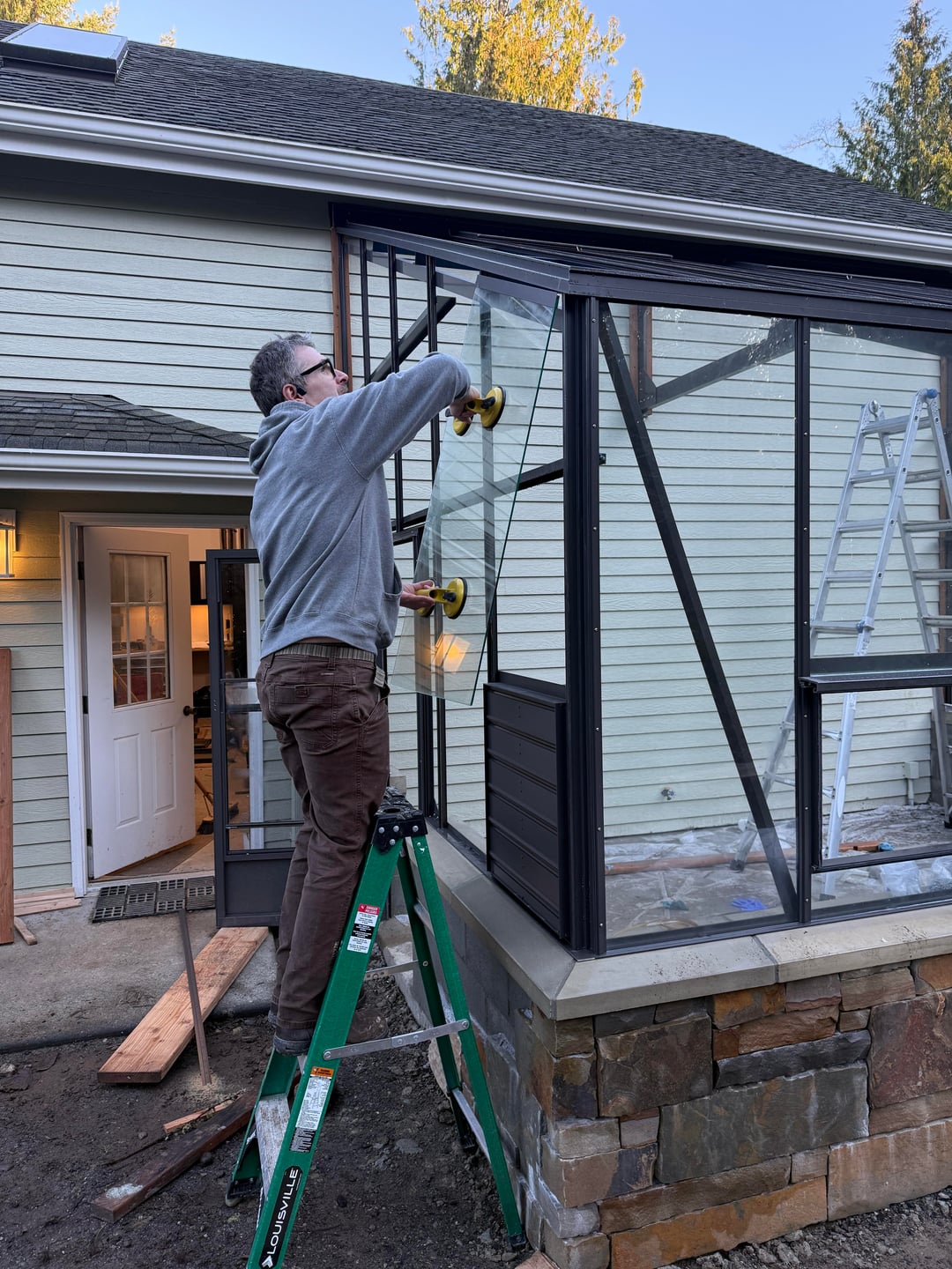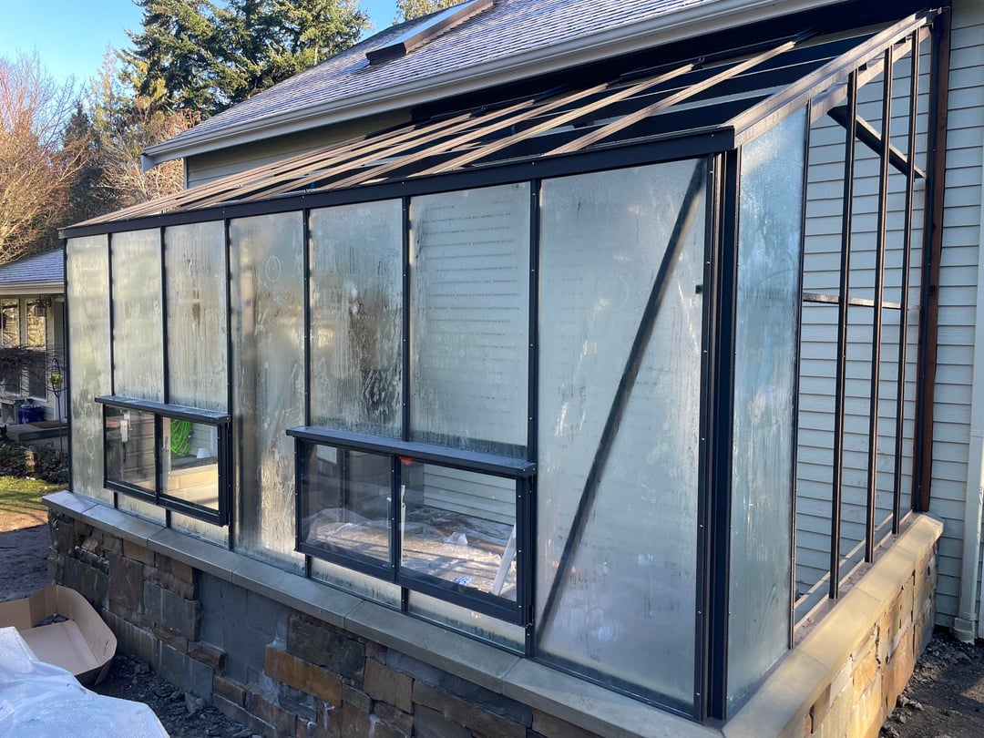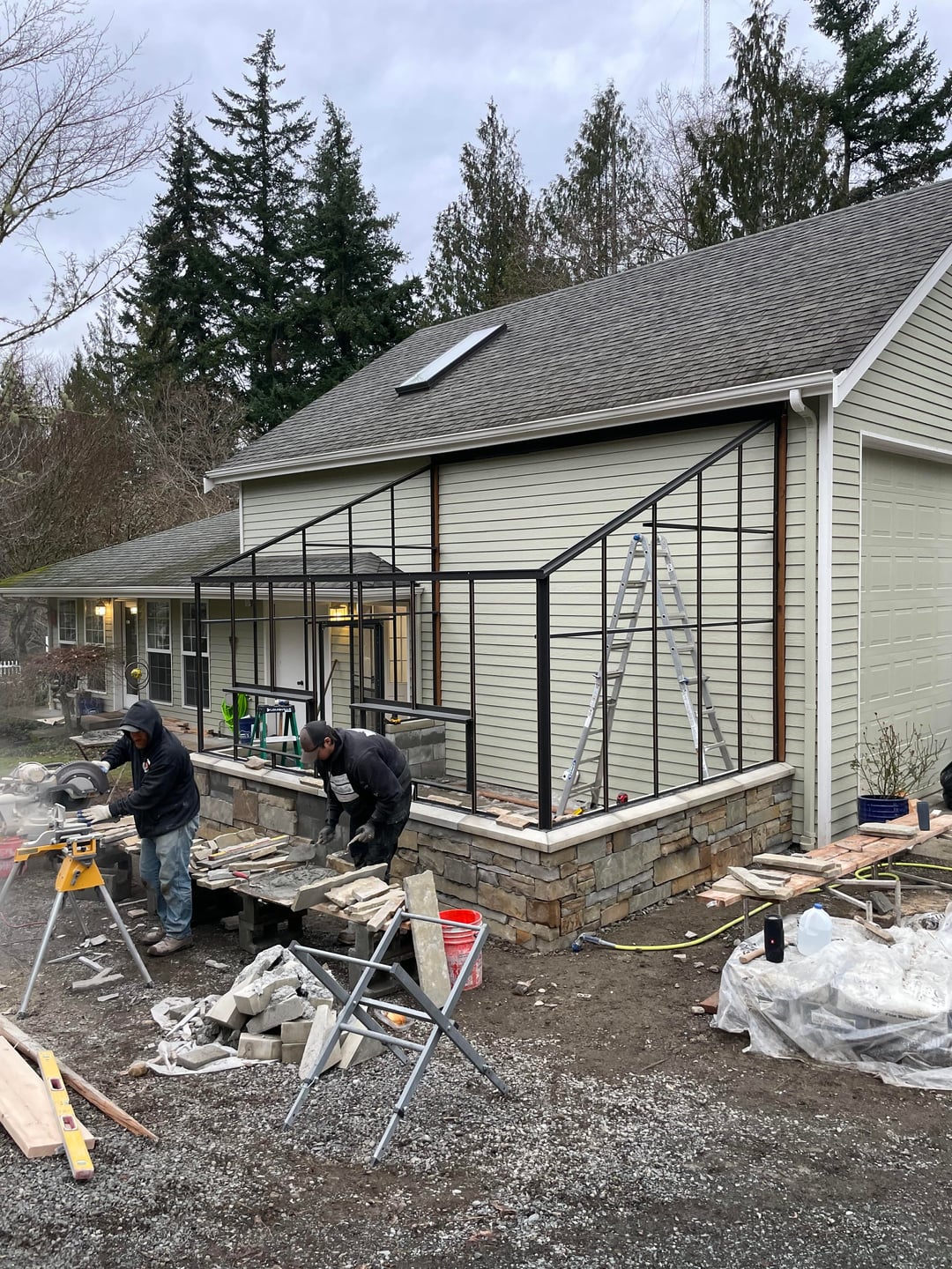 Finally completed our 14’x10’ custom BC Greenhouse build! This project took about six months from idea to completion. This is the 6mm glass version, with shutters, exhaust fan and 45btu gas heater. We poured a thickened edge slab that was 20” deep on the sides and threw up a 28” foundation CMU wall with real stone veneer on it (and built a matching planter with the extra materials). I installed 220v for grow lights to help with light during our winter months (we’re in Western Washington) as well. The string lights are temporary maybe until we figure out what general use lighting we want, and I still have to attach the loose conduit to the aluminum structure.