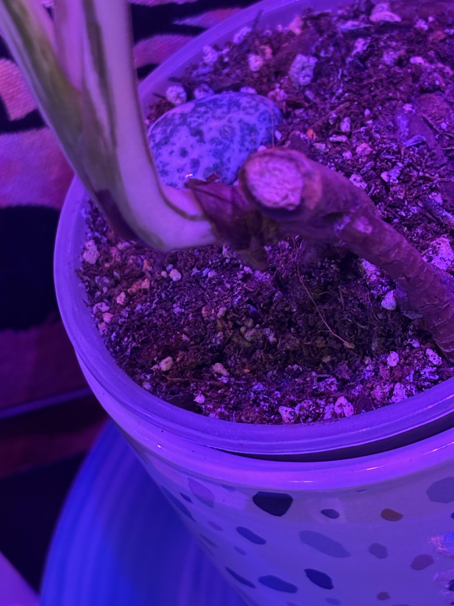 Hi! I got this monstera albo and since I bought it I’ve been wanting to prop it so I can cut it off that big woody stem. Is it ready? Also, any tips for propping the woody stem would be nice! I was gonna get some of the keikis cloning paste and put a little slit in it to get some leaves