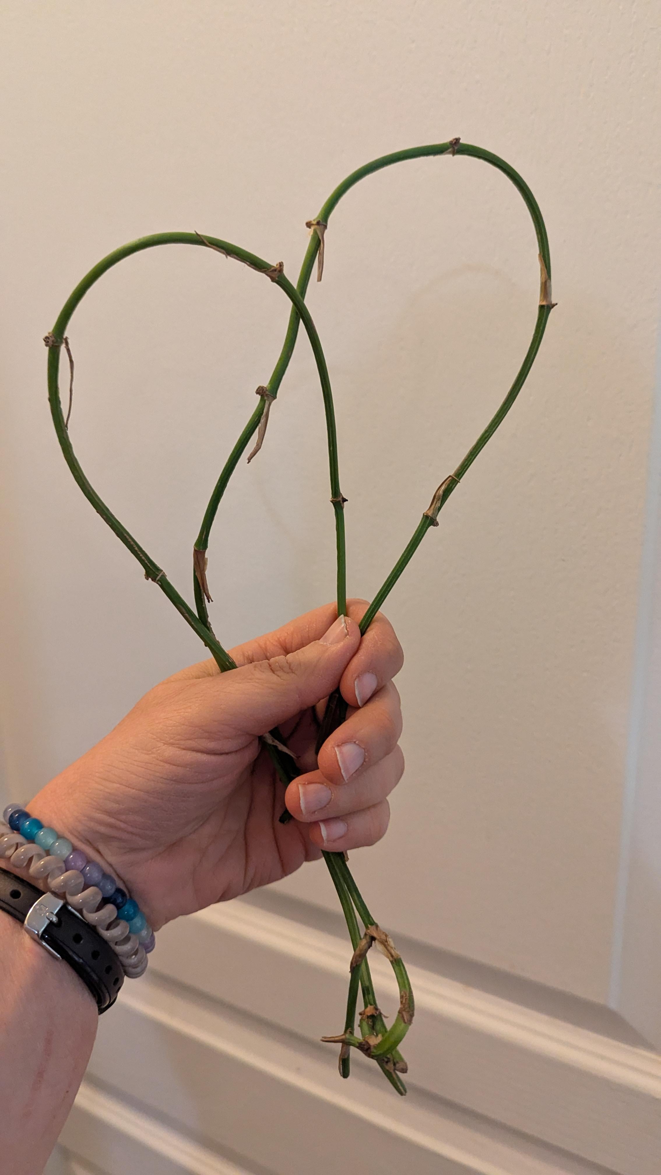 Yesterday I got a long cebu blue cutting. A lot of the vine didn't have any stems. I cut the parts with leaves so there was a node and stuck them in water.