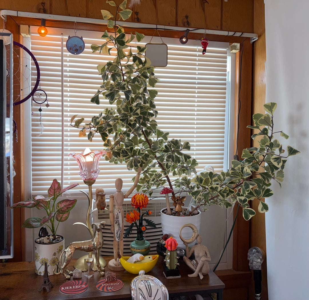 So I figured Iβd share the rest of my collection as well along with giving an update on the ficusβ itβs grown even bigger over the past year and is now a few inches away from hitting the ceiling. Any advice on what I should do when it eventually does reach the ceiling? π