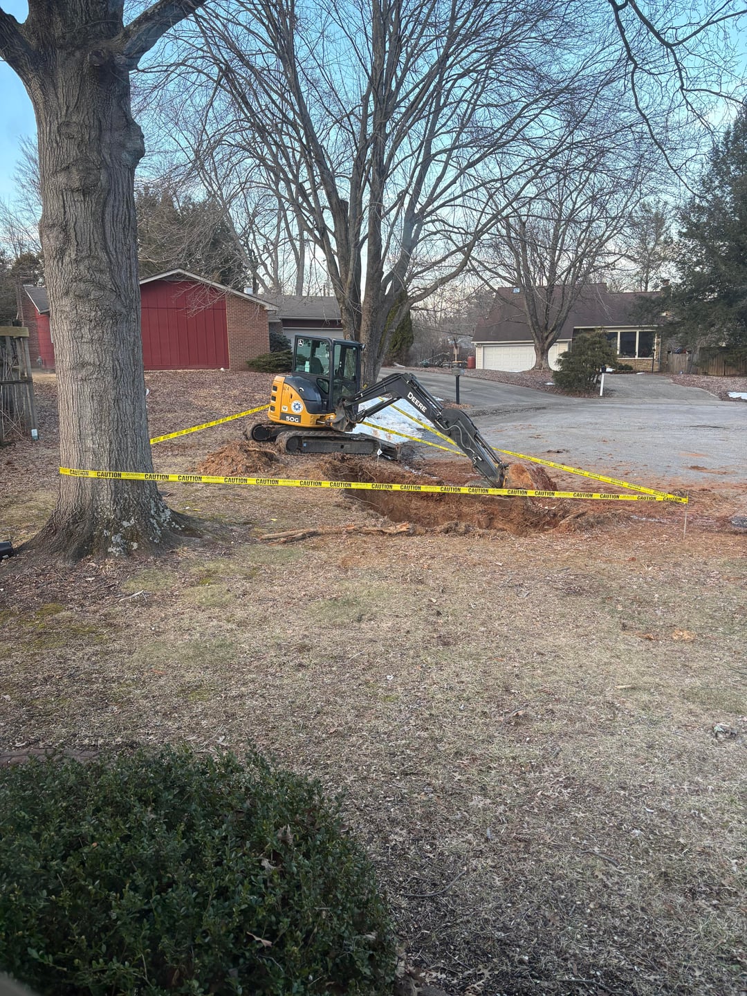 I can’t tell how far it is from your house. While it’s way closer to the tree than I’d prefer, there’s also a street on the opposite side of the trench.